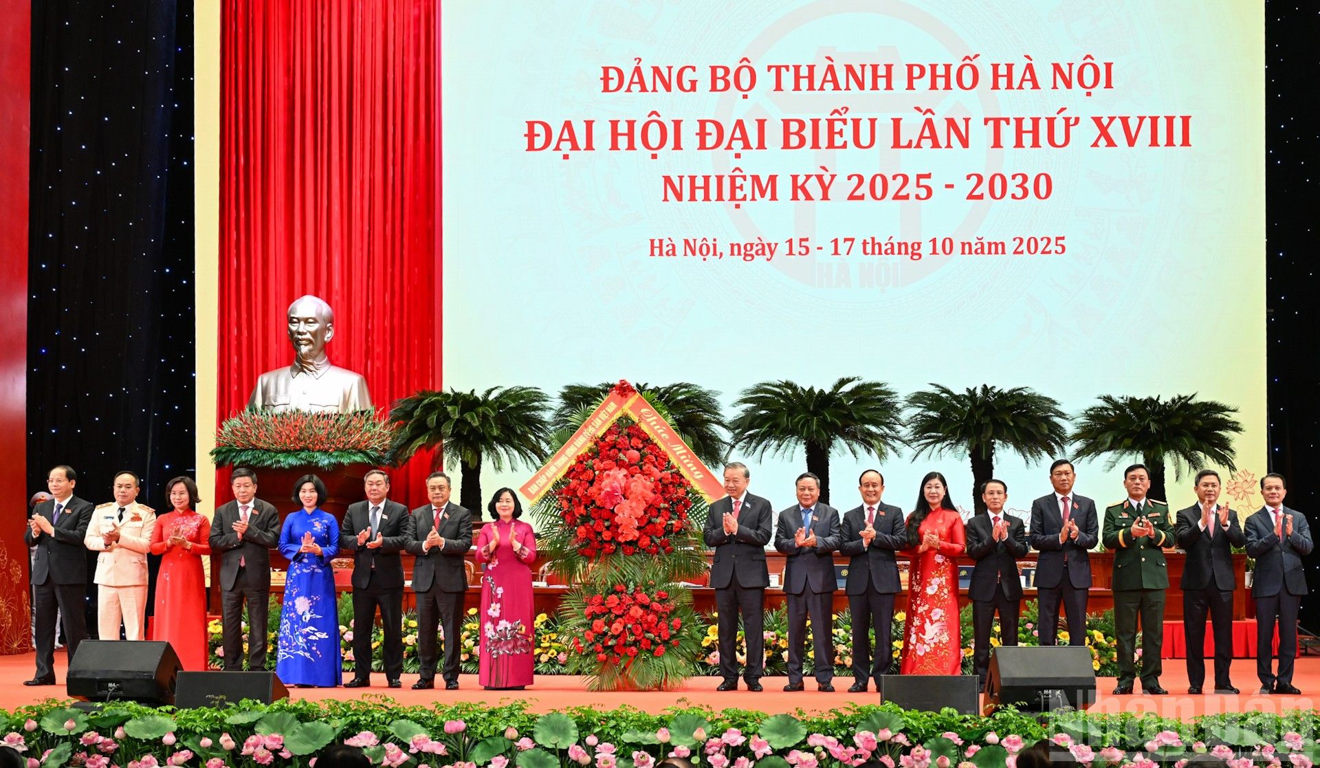 Les dirigeants, anciens dirigeants du Parti et de l'État, et les délégués à la XVIIIe Congrès de l'organisation du Parti de la ville de Hanoï, mandat 2025-2030.