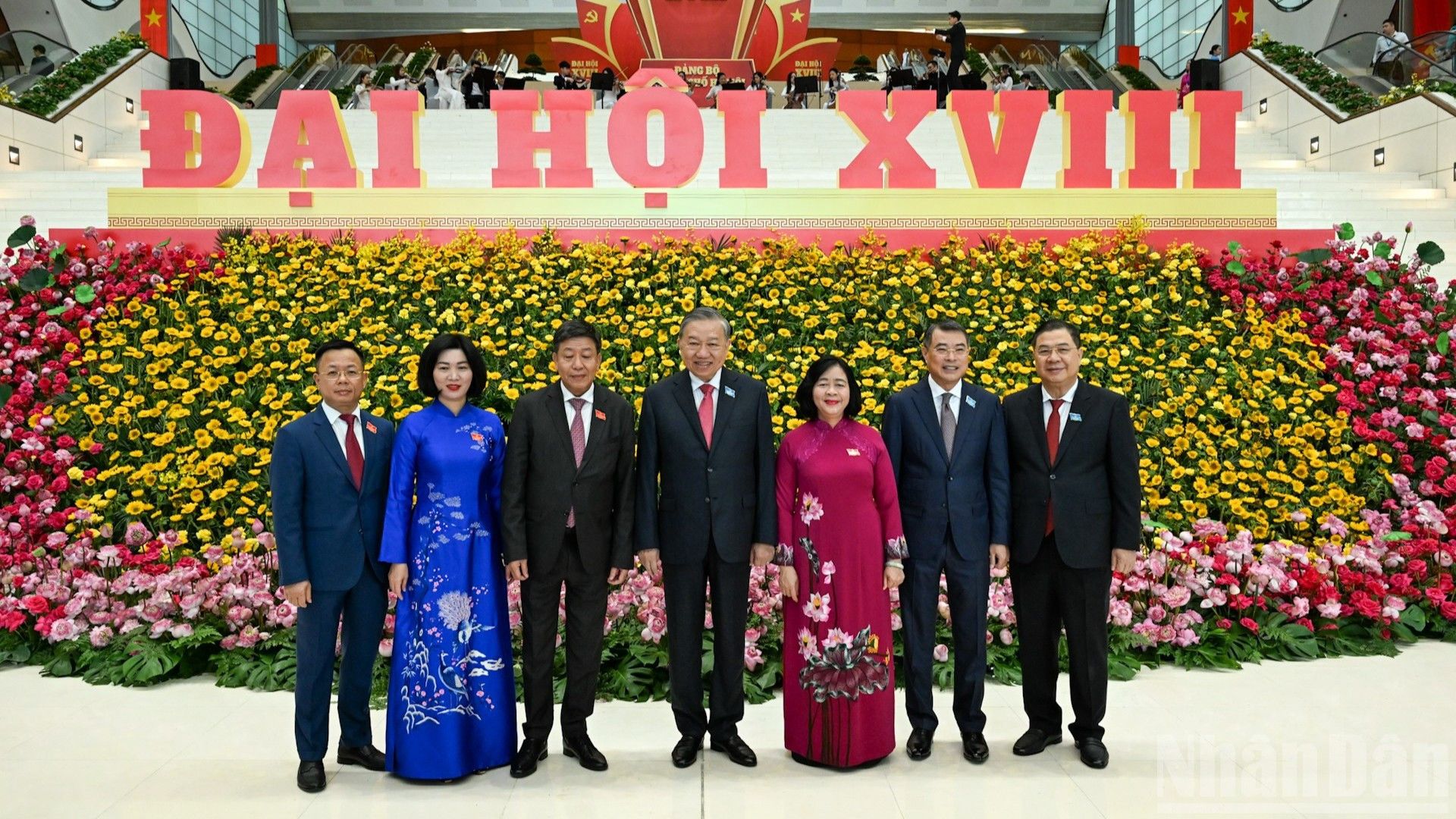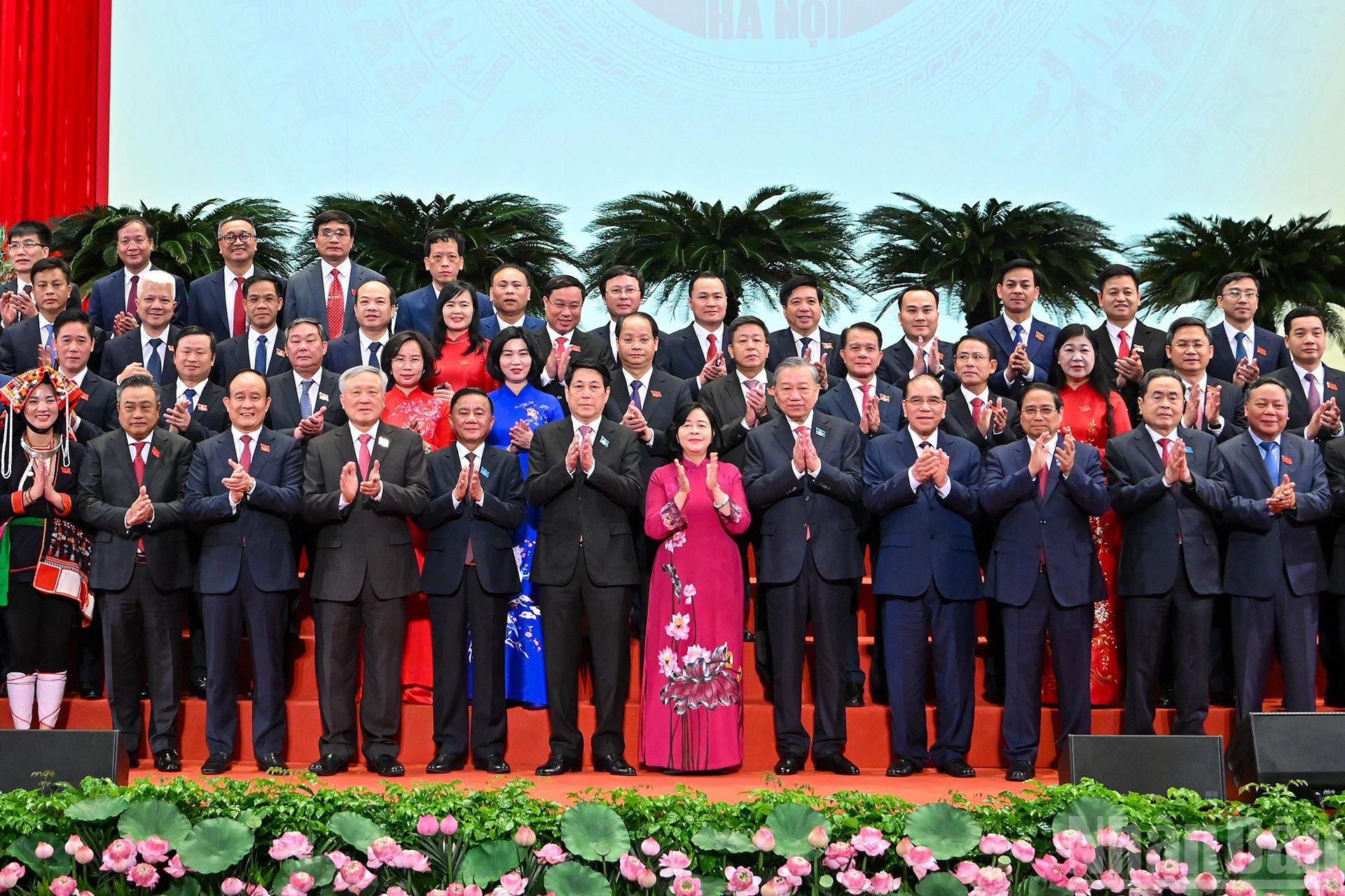 Le secrétaire général du PCV, To Lam, avec les délégués du Congrès du Comité du Parti de la ville de Hanoï. Photo : Duy Linh.