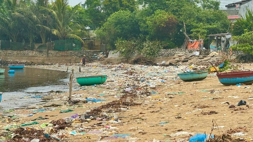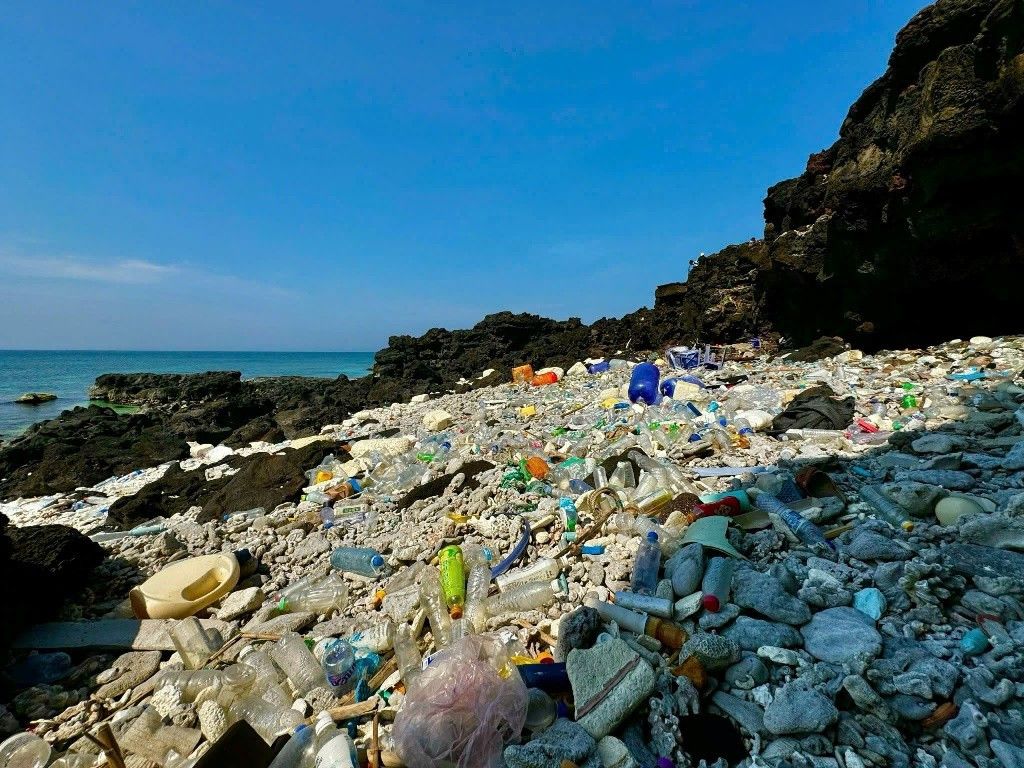Rác thải nhựa dùng một lần tràn lan tại Đảo Bé (đặc khu Lý Sơn, tỉnh Quảng Ngãi. Ảnh: Nguyễn Ngọc