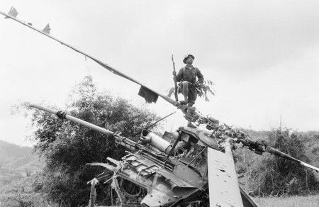 Xác máy bay Mỹ bị Quân Giải phóng bắn rơi trong Chiến dịch Đường 9-Khe Sanh. Ảnh: Tư liệu TTXVN