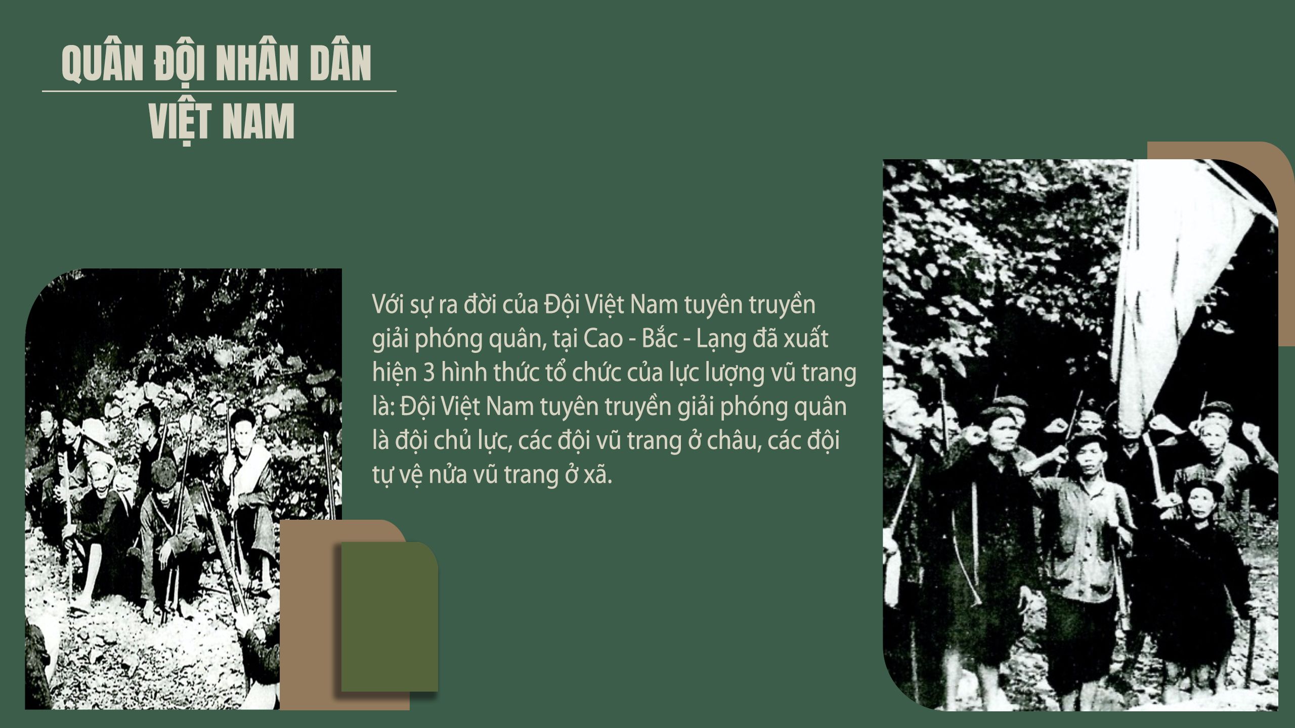 Để đẩy mạnh phong trào, kịp thời đón lấy thời cơ cách mạng, tháng 12 - 1944, Lãnh tụ Hồ Chí Minh ra chỉ thị thành lập Đội Việt Nam tuyên truyền giải phóng quân, Người ghi rõ: “Tên ĐỘI VIỆT NAM TUYÊN TRUYỀN GIẢI PHÓNG QUÂN nghĩa là chính trị trọng hơn quân sự. Nó là đội tuyên truyền”[2]... “Vì cuộc kháng chiến của ta là cuộc kháng chiến của toàn dân cần phải động viên toàn dân, vũ trang toàn dân”...