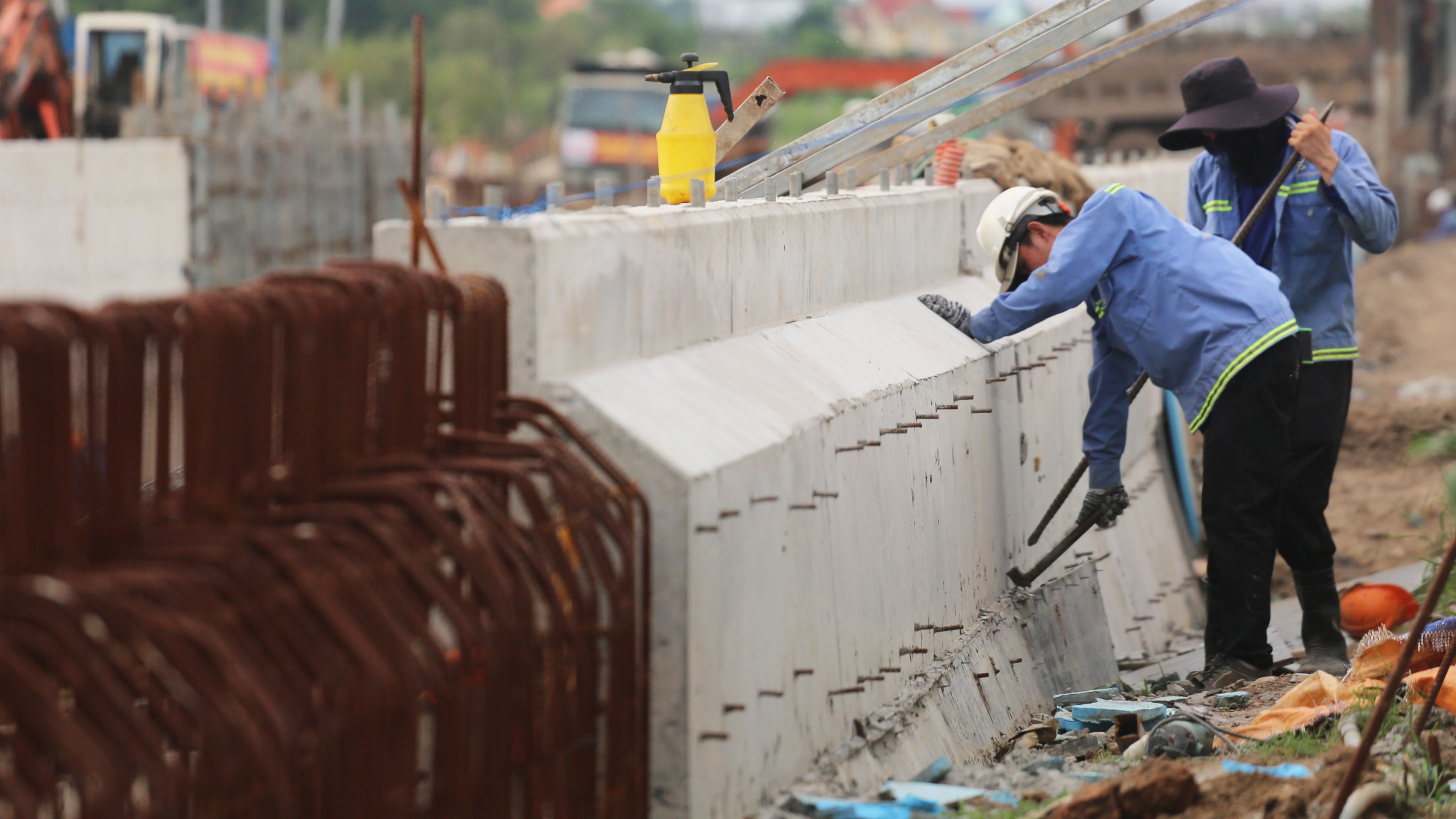 Tại công trường gói thầu Xây lắp 6 thuộc dự án đường Vành đai 3 Thành phố Hồ Chí Minh đoạn qua xã Củ Chi, hàng trăm công nhân tất bật thi công nhằm đẩy nhanh tiến độ, bảo đảm các mốc thời gian quan trọng của dự án.