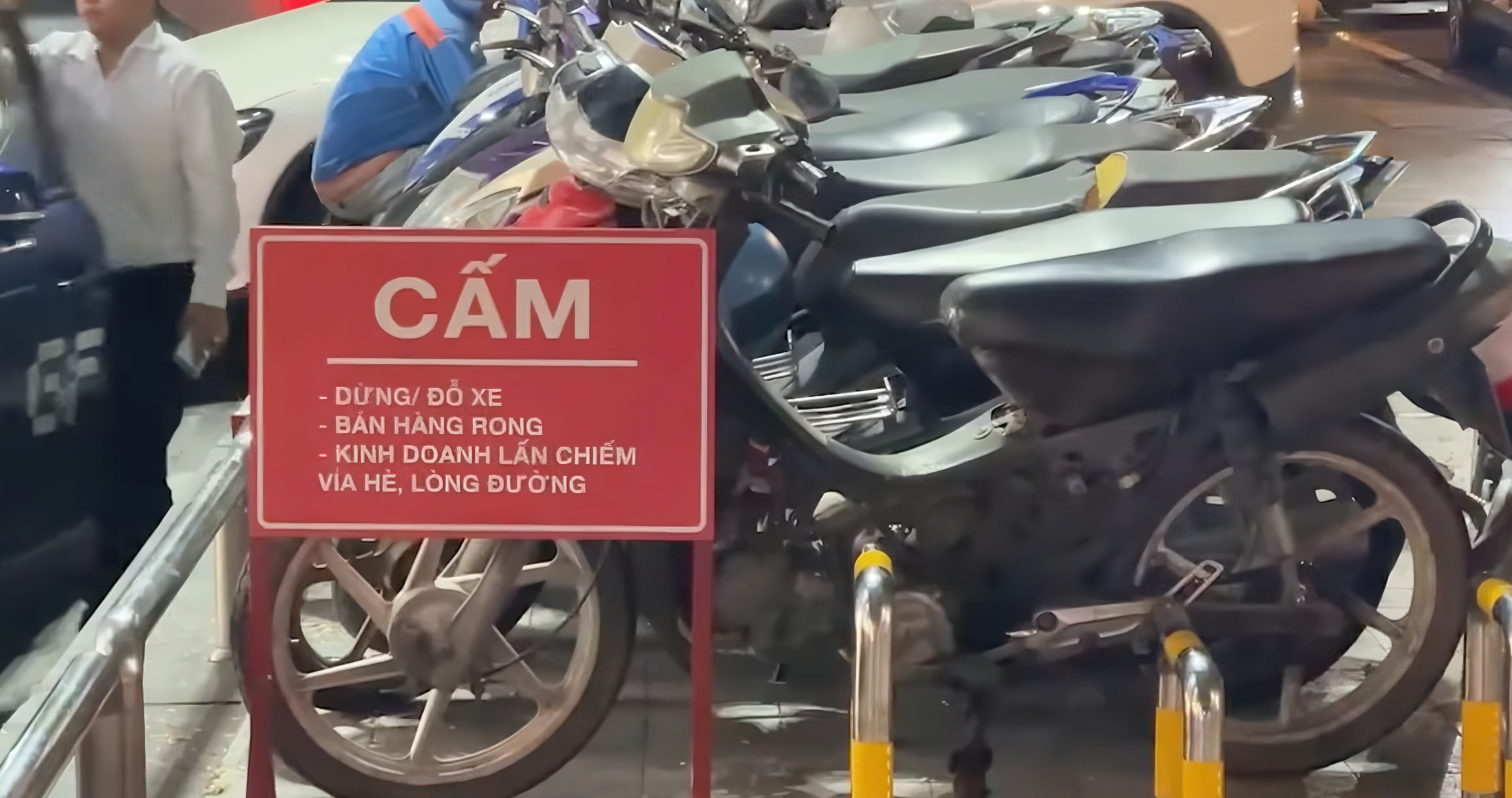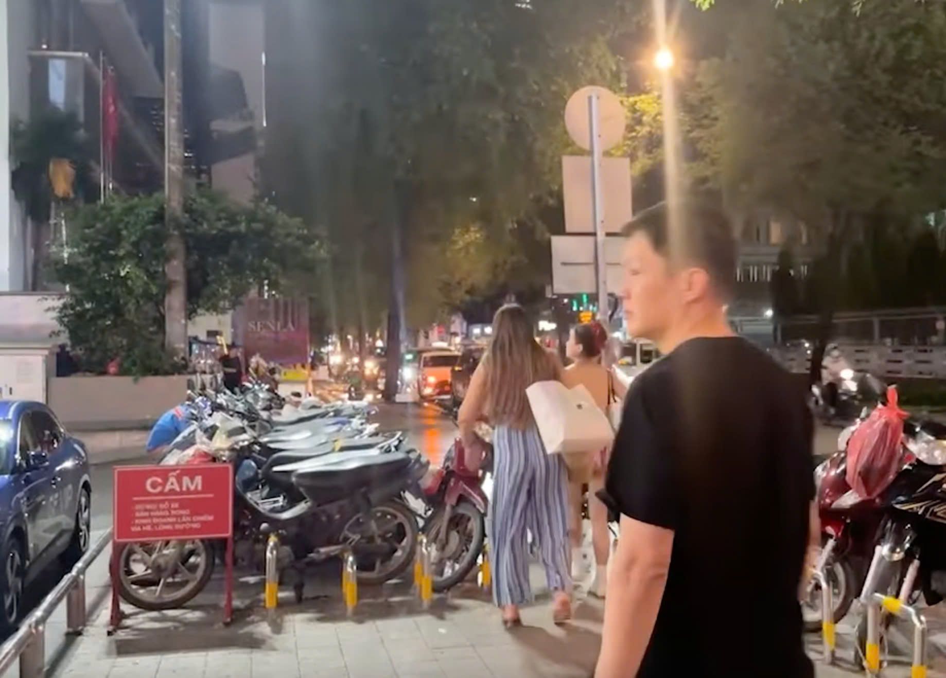 Ngay tại phường Sài Gòn, hàng dài xe máy, ô tô đậu nghênh ngang, được giữ xe thu phí hẳn hoi, ngay sau bảng cấm.