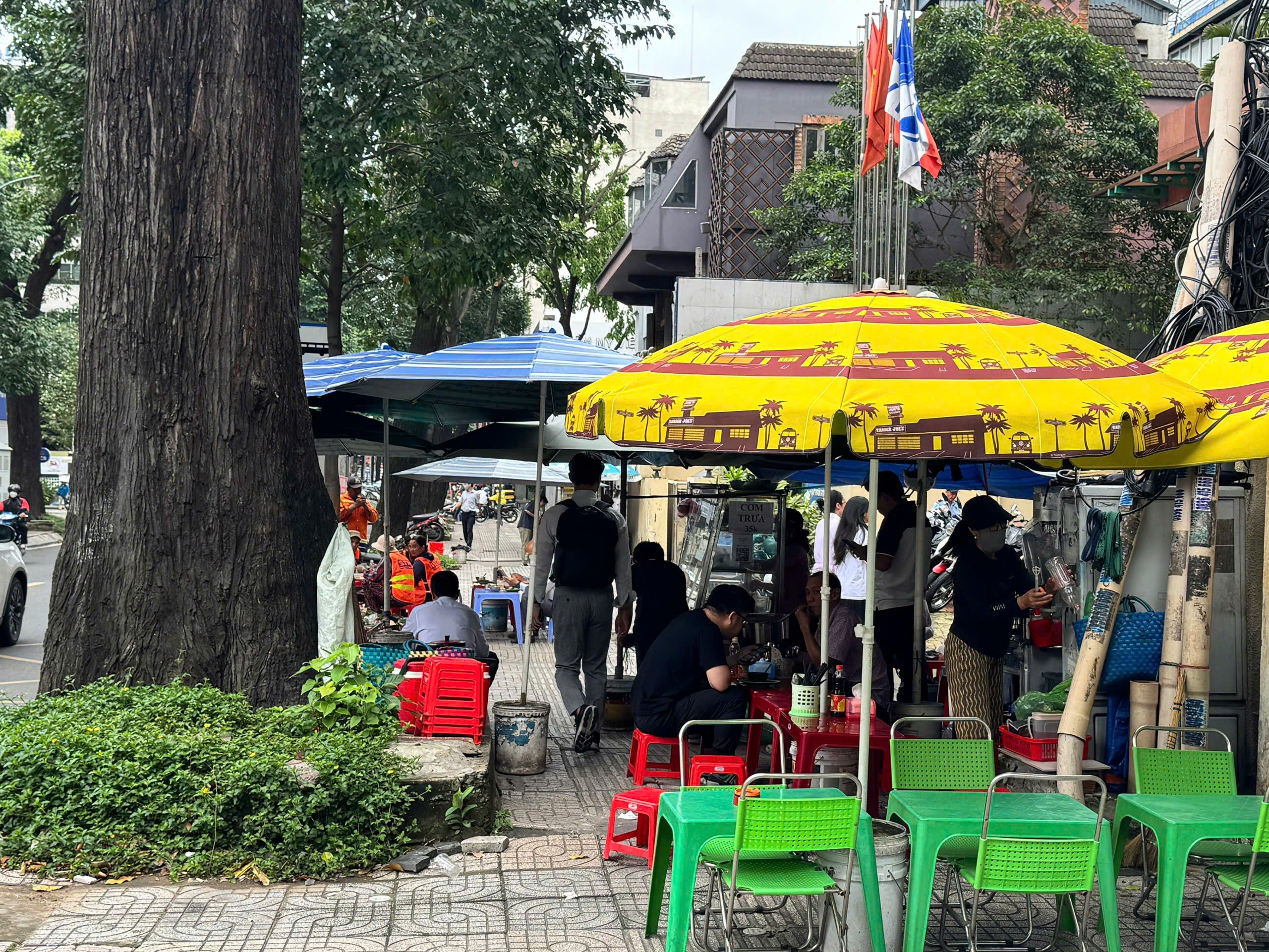 Thậm chí, có hẳn cả một “tổ hợp” được lấn chiếm bài bản như đoạn đường Phạm Ngọc Thạch gần với giao lộ Điện Biên Phủ. Anh bán cơm, em bán mì, chỗ trống ở giữa để bày bàn, dù nơi này là nơi tập trung các cơ quan Bộ, Ngành.