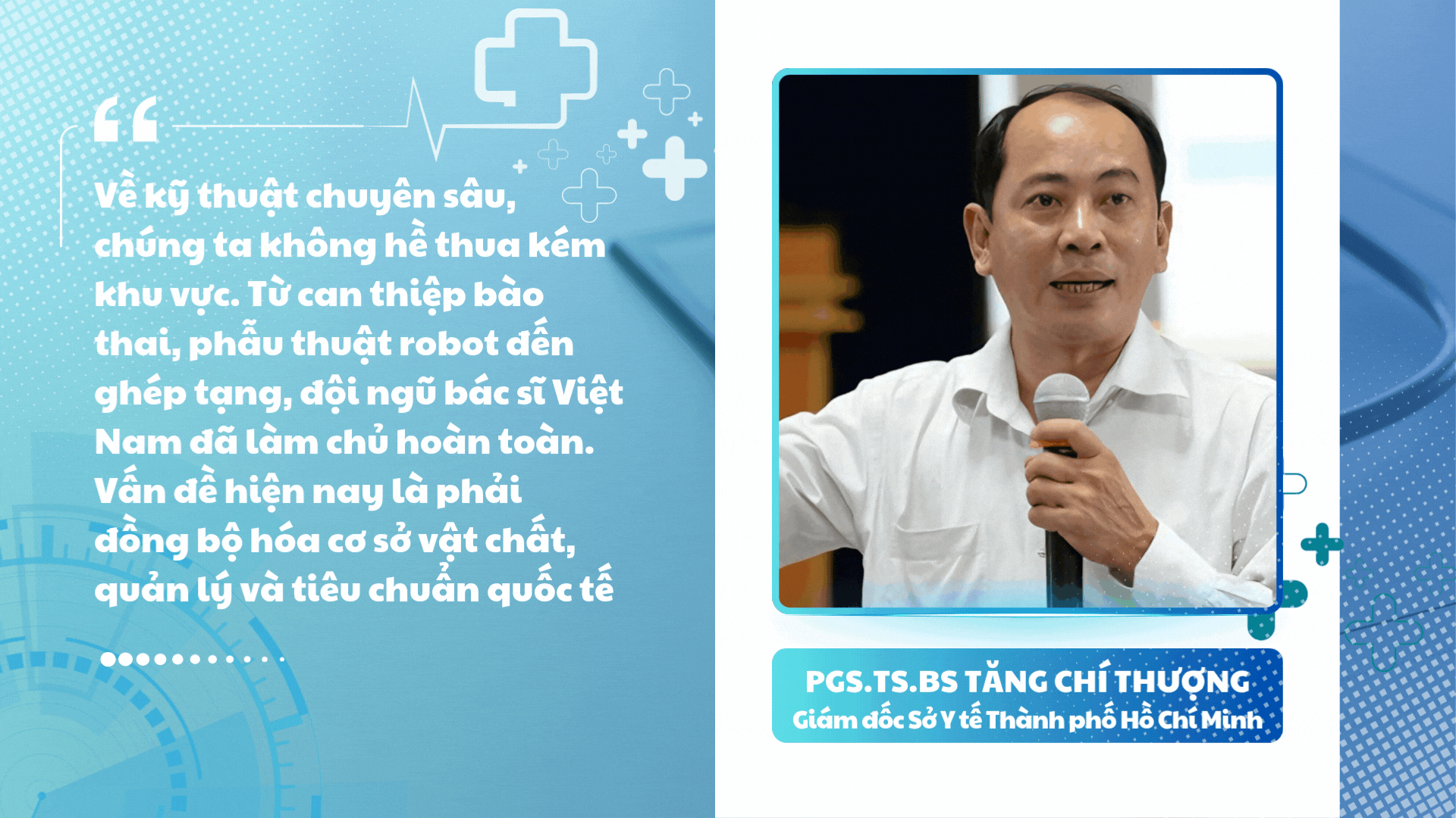 Năm 2024, riêng Bệnh viện Chợ Rẫy đã thực hiện hơn 400 ca ghép tạng, trong đó có 20 ca ghép thận xuyên quốc gia, tiếp nhận bệnh nhân từ Campuchia, Lào, Thái Lan. Bệnh viện đại học Y dược Thành phố trở thành trung tâm đào tạo phẫu thuật nội soi robot lớn nhất Đông Nam Á với hơn 1.000 ca phẫu thuật mỗi năm.