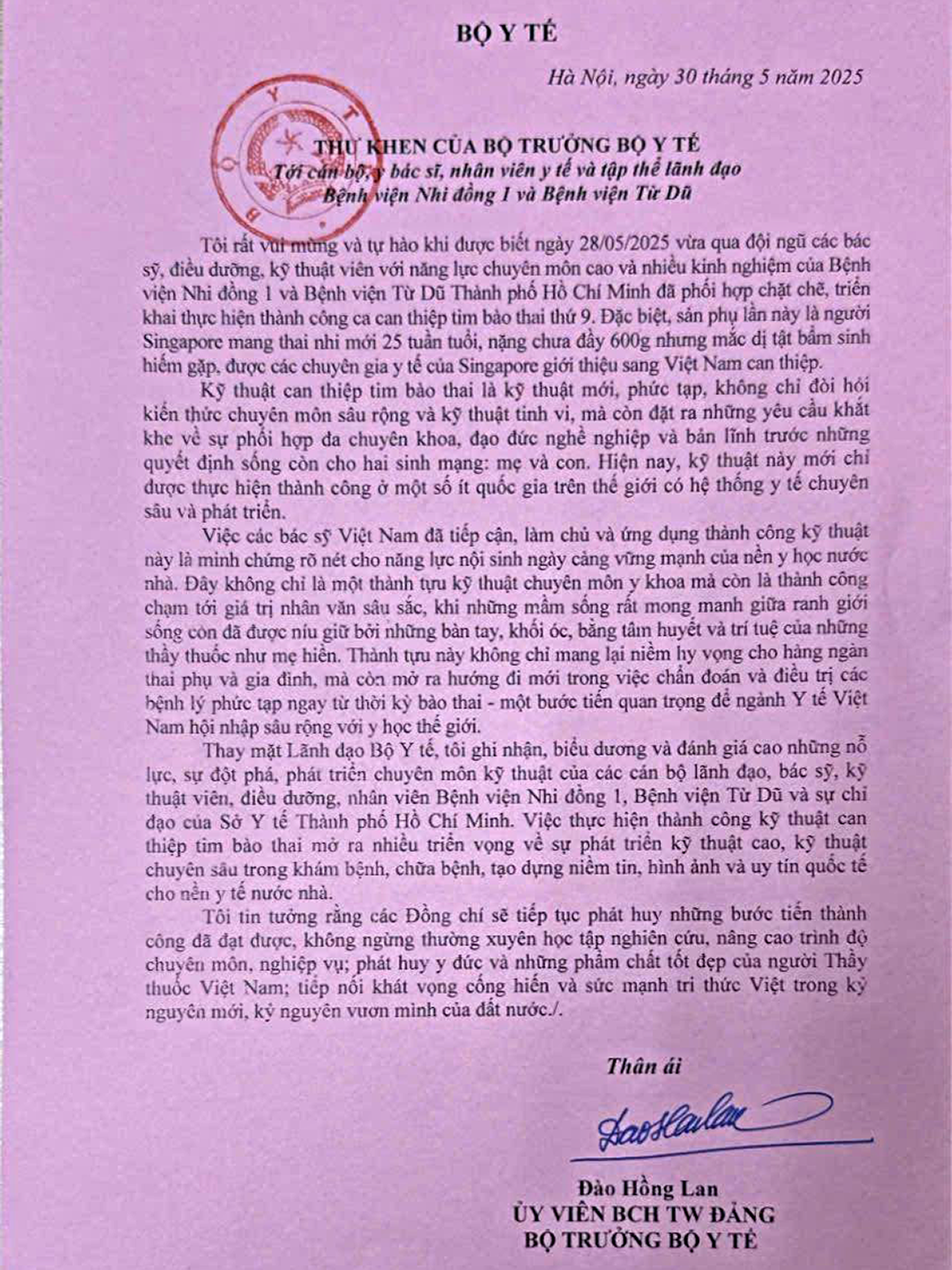 Ngày 28/5/2025, một sự kiện y học chấn động khu vực đã diễn ra tại Thành phố Hồ Chí Minh đó là ca can thiệp tim bào thai 22 tuần tuổi cho sản phụ người Sigapore đã được thực hiện thành công tại Bệnh viện Từ Dũ phối hợp Bệnh viện Nhi đồng 1.