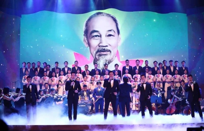 Chương trình nghệ thuật chào mừng Hội nghị văn hóa toàn quốc năm 2021. (Ảnh: Nam Nguyễn/Vietnam+)