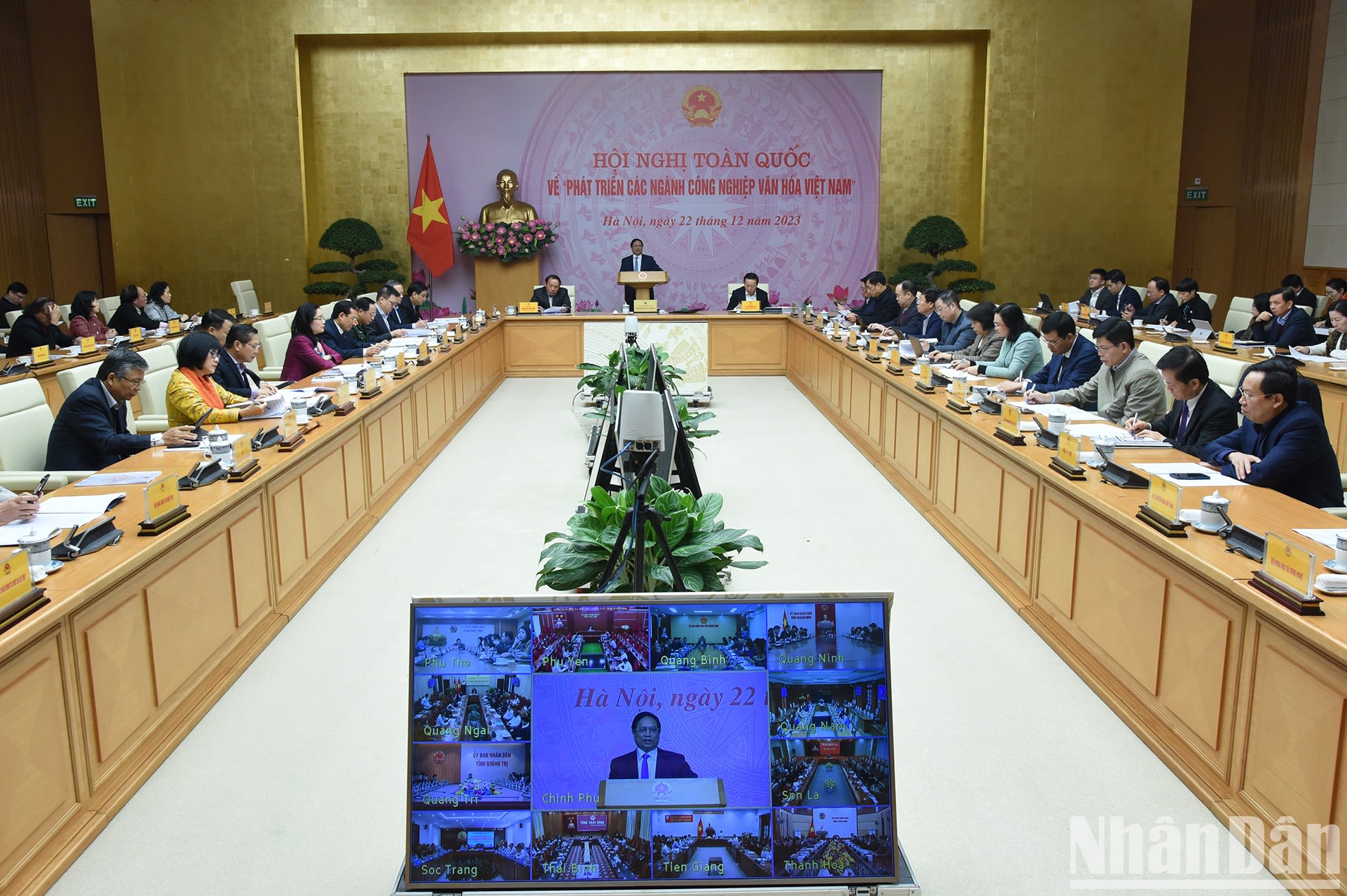 Thủ tướng Chính phủ Phạm Minh Chính chủ trì Hội nghị toàn quốc về phát triển các ngành công nghiệp văn hóa Việt Nam, ngày 22/12/2023.