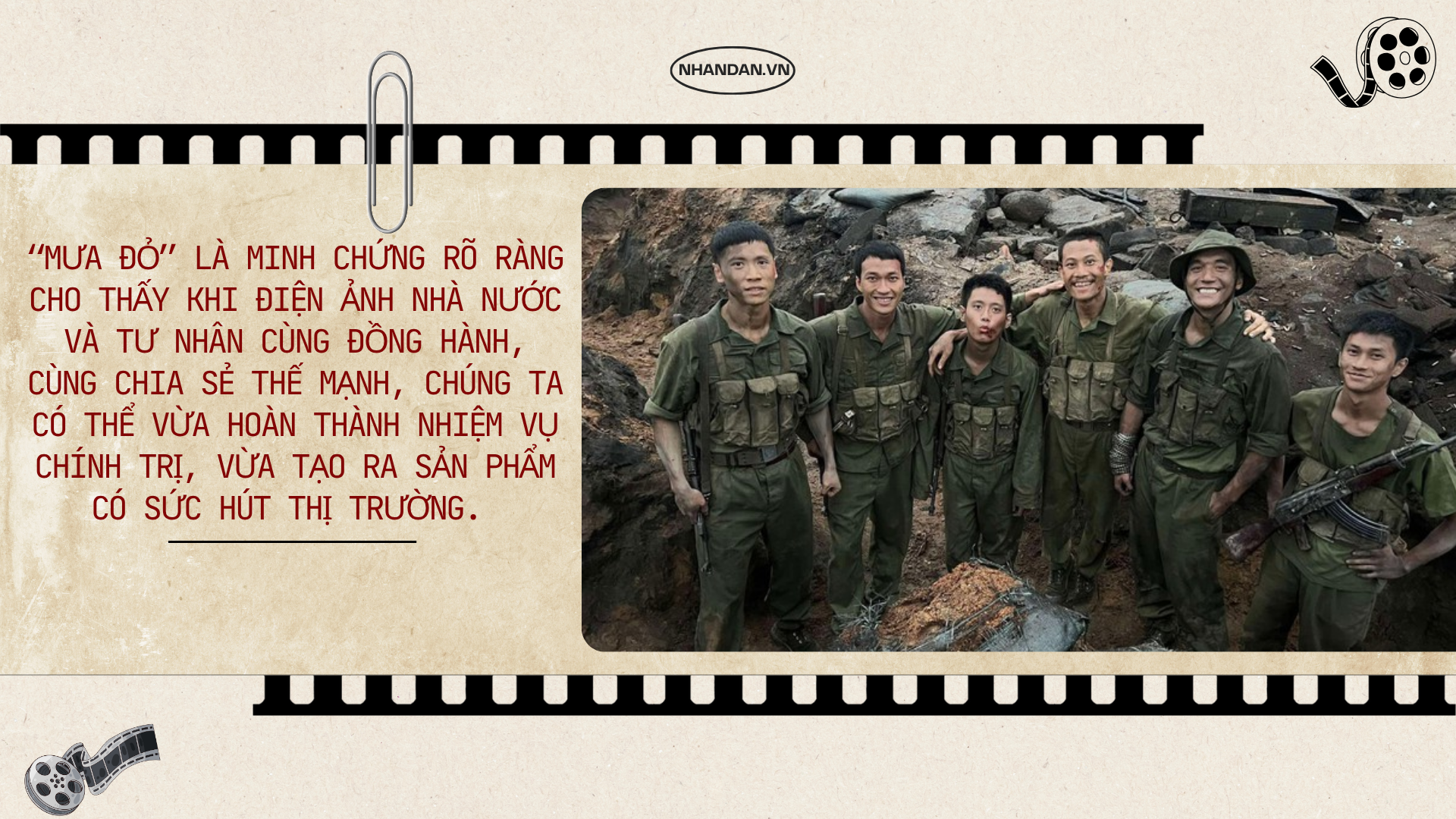Theo Cục trưởng Trần Cường, điều quan trọng là cách huy động và phối hợp nguồn lực. Nếu trước kia phim chiến tranh, cách mạng thường bị gắn với khuôn khổ hẹp, thì nay, nhờ sự liên kết công - tư, các tác phẩm như “Mưa đỏ” đã chứng minh rằng phim nhiệm vụ chính trị hoàn toàn có thể trở thành “bom tấn” được khán giả săn đón. Đây là minh chứng rõ ràng cho thấy khi điện ảnh Nhà nước và tư nhân cùng đồng hành, cùng chia sẻ thế mạnh, chúng ta có thể vừa hoàn thành nhiệm vụ chính trị, vừa tạo ra sản phẩm có sức hút thị trường.
