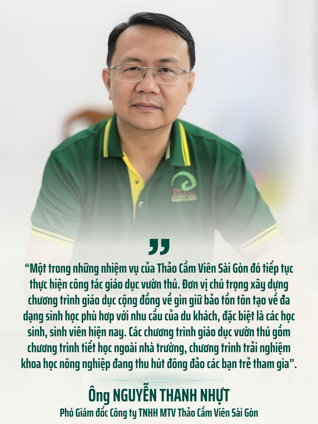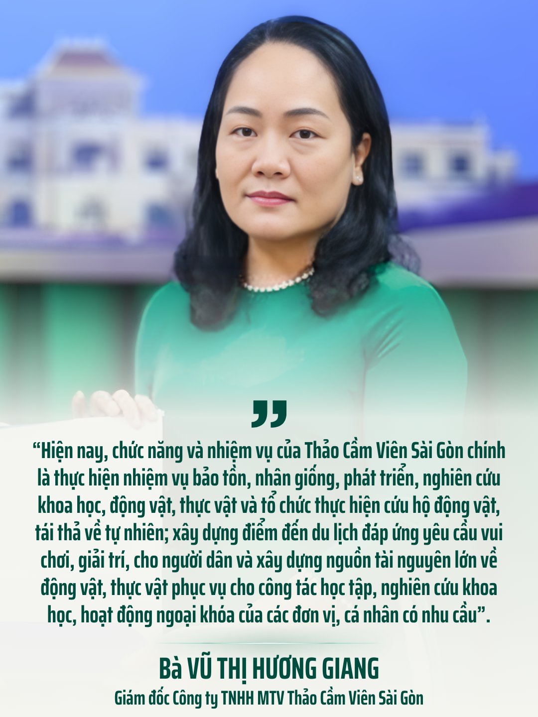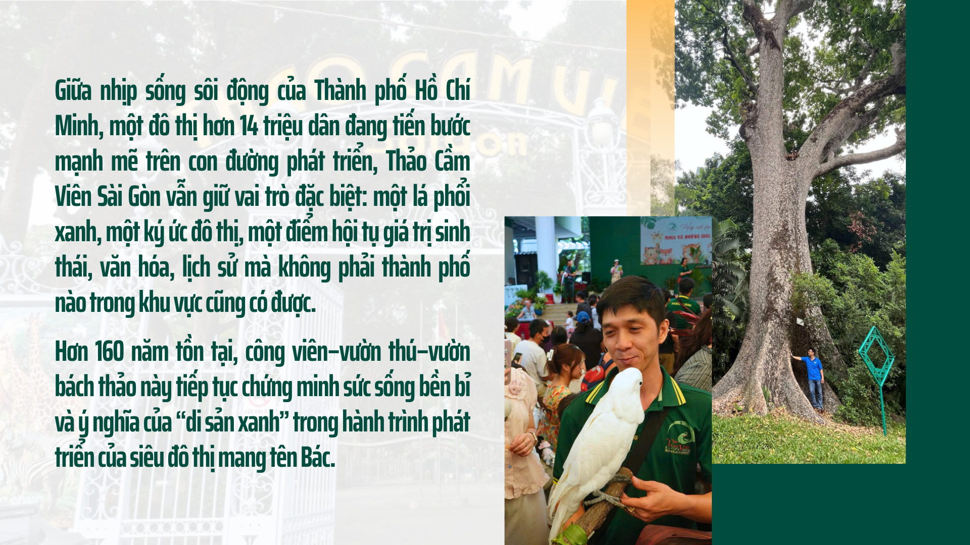 Thảo Cầm Viên Sài Gòn với hơn 160 tuổi đời sẽ tiếp tục là nơi gìn giữ ký ức, nuôi dưỡng tri thức sinh thái, lan tỏa tinh thần xanh, góp phần xây dựng Thành phố Hồ Chí Minh trở thành đô thị đáng sống, hiện đại và bền vững trong tương lai.