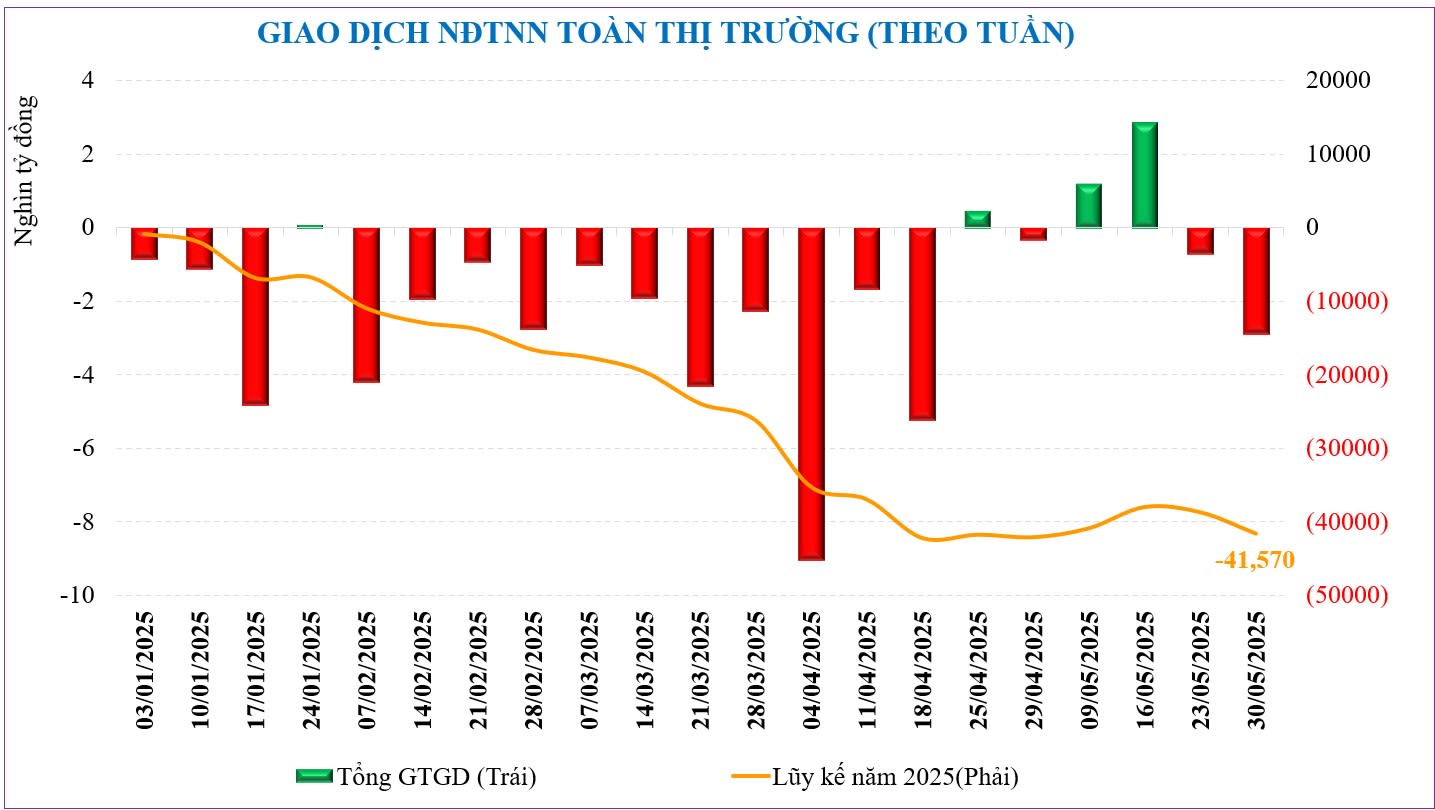 Tuy vậy, tính chung trong cả tháng 5, khối ngoại đã có tháng mua ròng +488 tỷ đồng. Dù giá trị mua ròng không lớn, song đây là tháng mua ròng đầu tiên của khối ngoại kể từ tháng 2/2024.