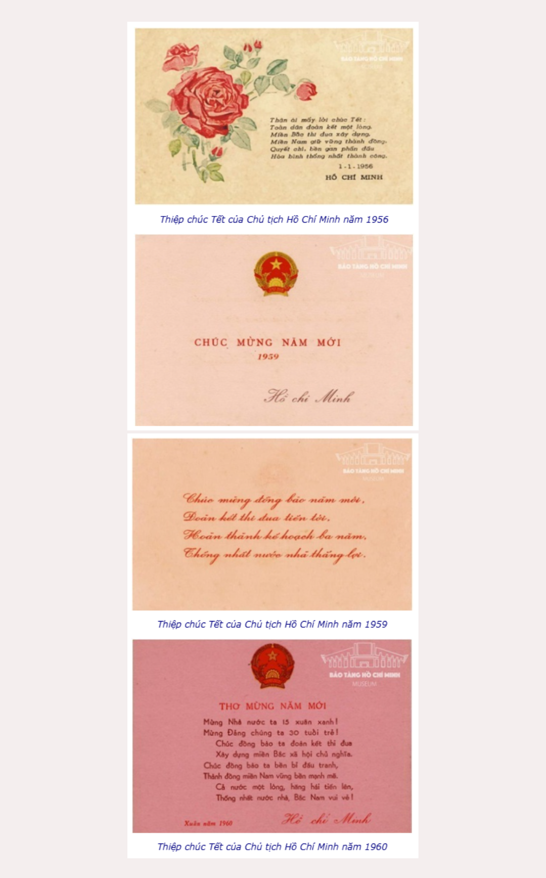 Thơ chúc Tết Xuân Canh Tý 1960, Người viết: “Mừng Nhà nước ta 15 xuân xanh!/ Mừng Đảng chúng ta 30 tuổi trẻ!/ Chúc đồng bào ta đoàn kết thi đua/ Xây dựng miền Bắc xã hội chủ nghĩa/ Chúc đồng bào ta bền bỉ đấu tranh/ Thành đồng miền Nam vững bền mạnh mẽ/ Cả nước một lòng, hǎng hái tiến lên/ Thống nhất nước nhà, Bắc Nam vui vẻ!”.