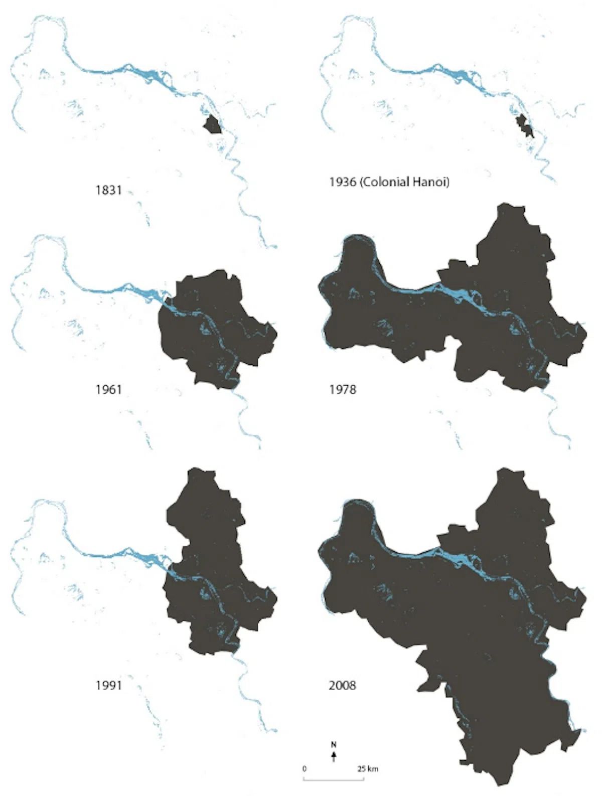 Hà Nội mở rộng qua các thời kỳ.
