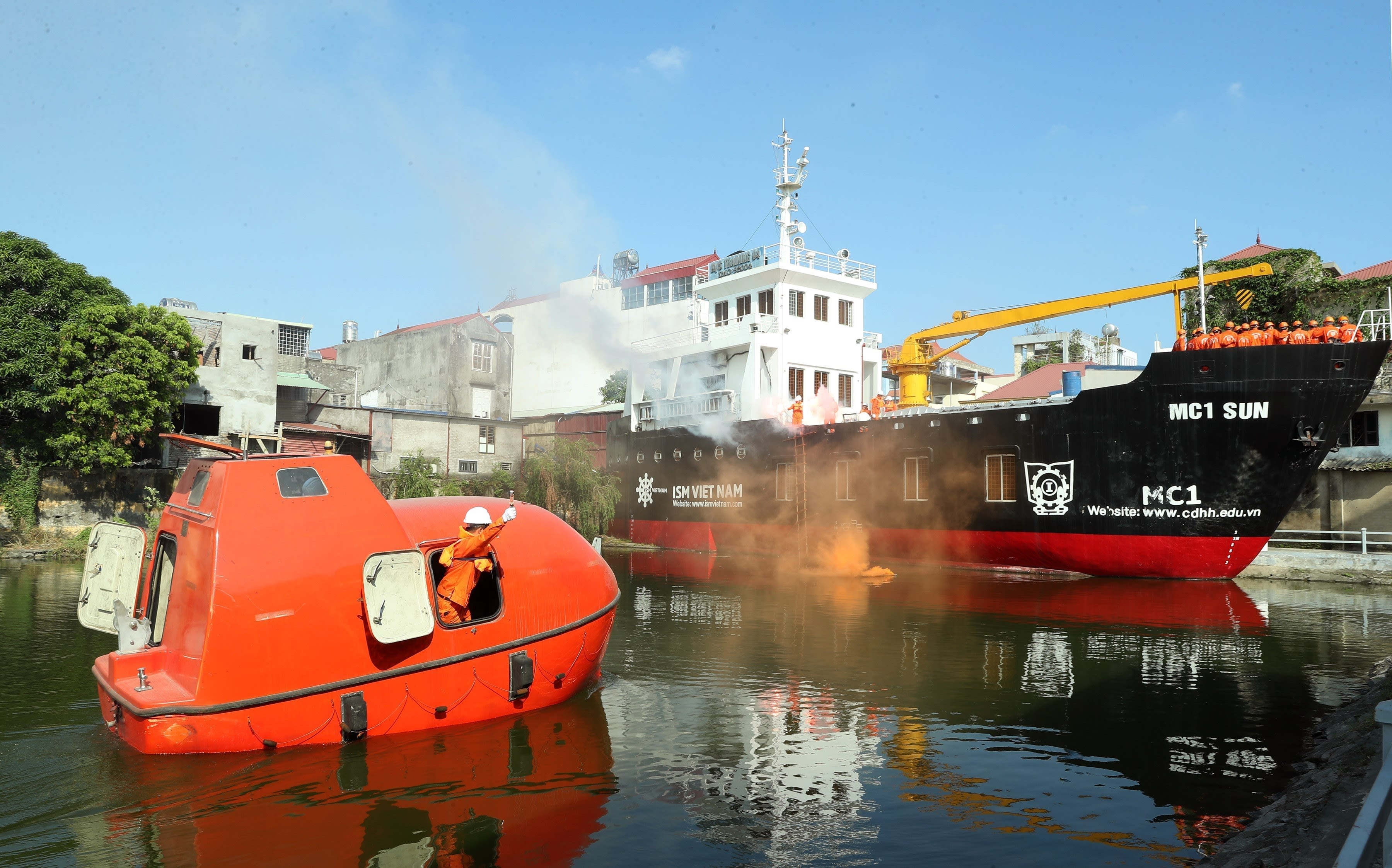 Sinh viên Trường cao đẳng Hàng hải 1 (Hải Phòng) thực hành cứu hộ, cứu nạn trên biển. Những sinh viên này, sau khi ra trường sẽ đáp ứng một phần nhu cầu thiếu hụt nguôn nhân lực chất lượng cao của ngành Hàng hải Hải Phòng. (Ảnh: TTXVN)