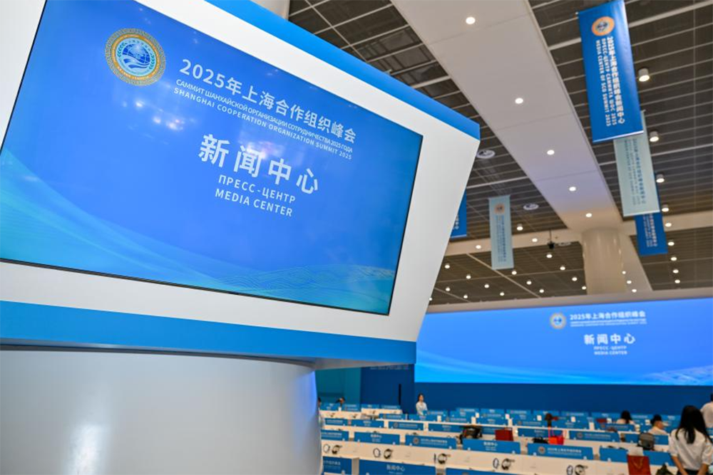 Quang cảnh Trung tâm Báo chí phục vụ Hội nghị Thượng đỉnh SCO 2025. (Ảnh: Tân Hoa Xã)