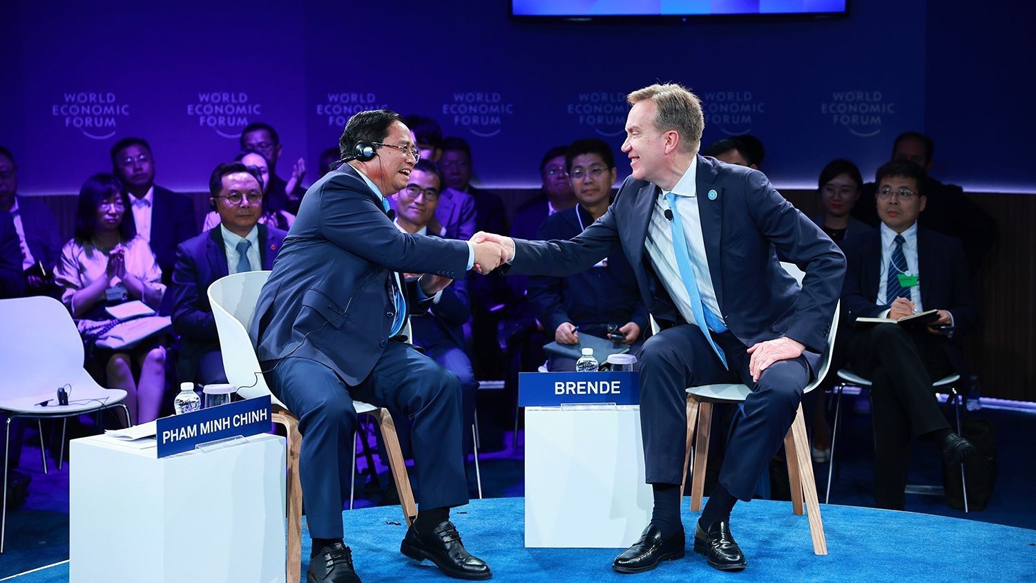 Tại Đối thoại, Thủ tướng Phạm Minh Chính và Chủ tịch điều hành WEF Borge Brende đã trao đổi về nhiều vấn đề, trong đó nổi bật là tầm nhìn và định hướng chính sách mới của Việt Nam về kỷ nguyên phát triển mới; kinh nghiệm của Việt Nam trong xây dựng nền kinh tế độc lập, tự chủ gắn liền với hội nhập quốc tế sâu rộng; đường lối chính sách đối ngoại của Việt Nam trước những bất ổn địa chính trị quốc tế.