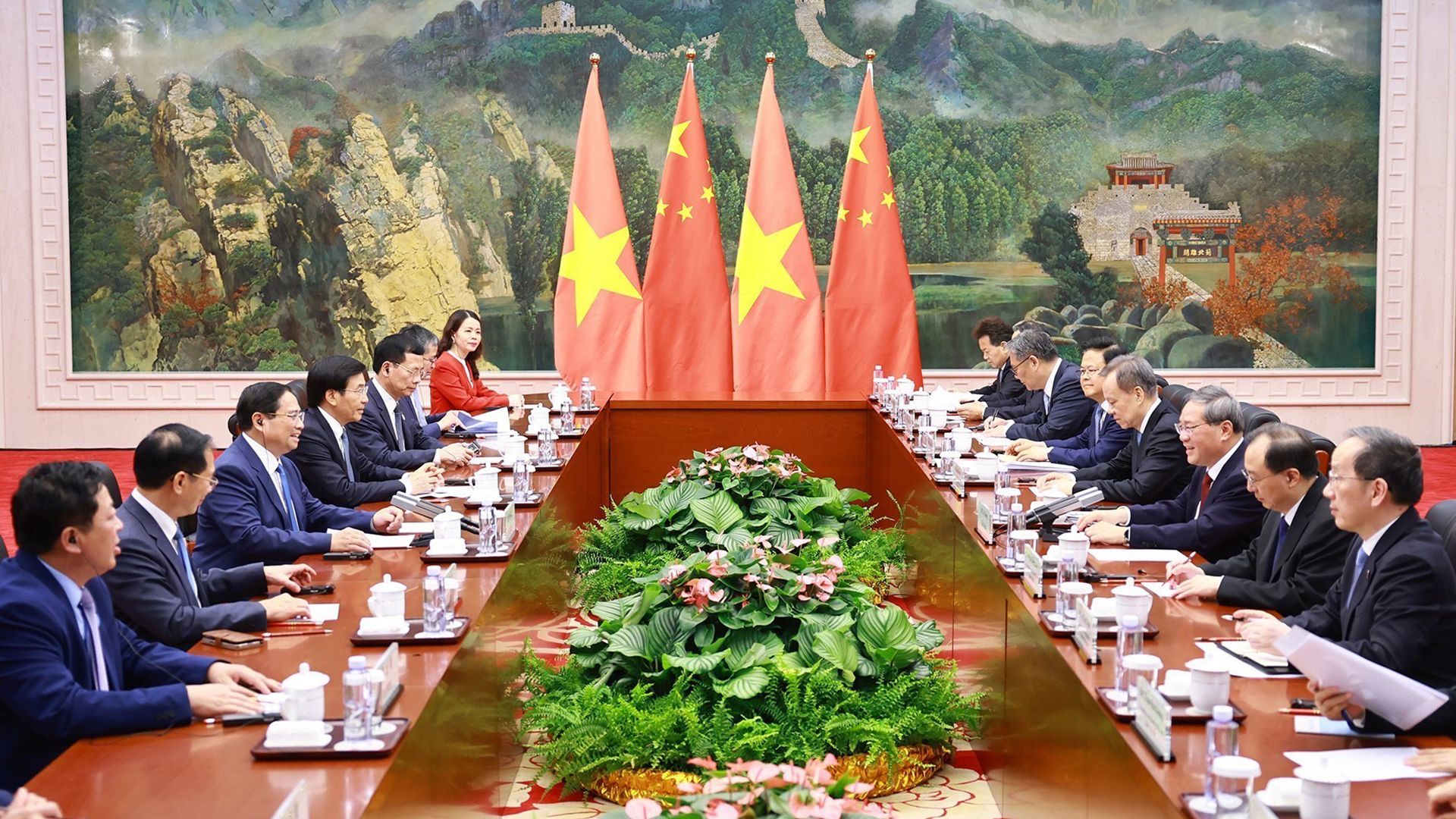 Trong khuôn khổ chuyến làm việc tại Trung Quốc, Thủ tướng Phạm Minh Chính đã có cuộc hội đàm với Thủ tướng Quốc vụ viện Trung Quốc Lý Cường. Tại cuộc hội đàm, Thủ tướng Phạm Minh Chính đánh giá cao những kết quả hết sức phong phú, thực chất của các chuyến thăm lẫn nhau giữa Tổng Bí thư Tô Lâm và Tổng Bí thư, Chủ tịch Trung Quốc Tập Cận Bình, cũng như các chuyến thăm, làm việc giữa hai Thủ tướng trong các năm 2024 và 2025 đã tạo động lực mạnh mẽ, thúc đẩy quan hệ hợp tác giữa hai nước trên các lĩnh vực.