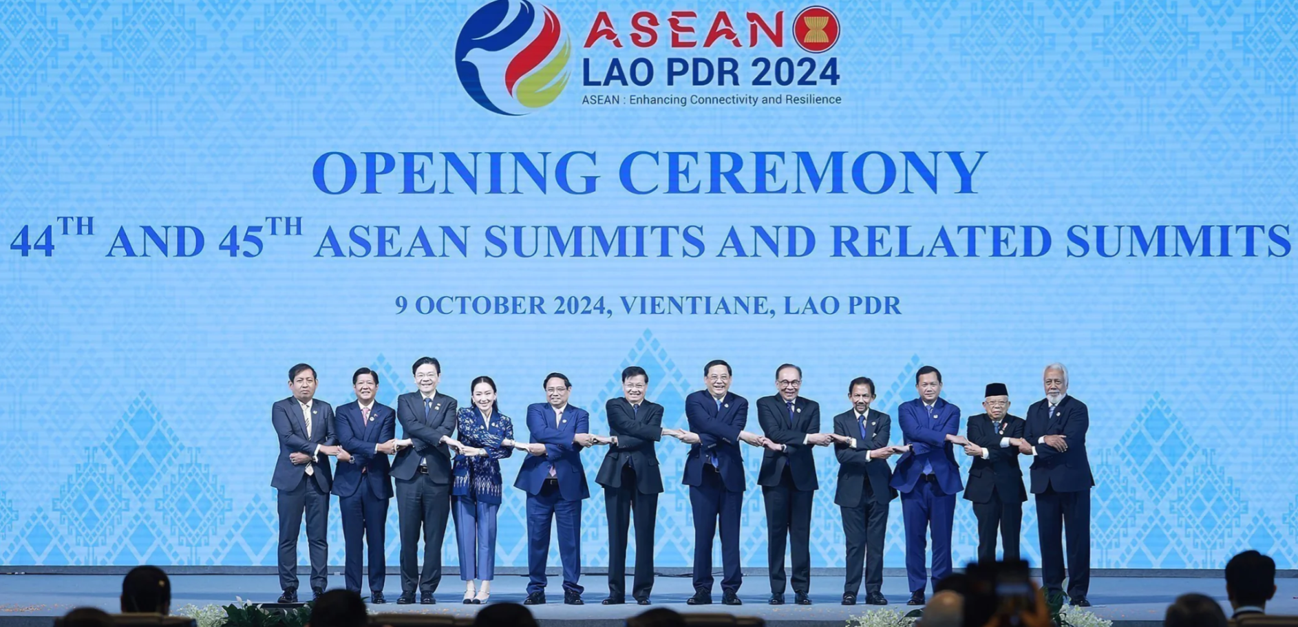 9 октября 2024 года Премьер-министр Фам Минь Тьинь и главы делегаций приняли участие в пленарном заседании 44-го саммита АСЕАН. Фото: ВИА
