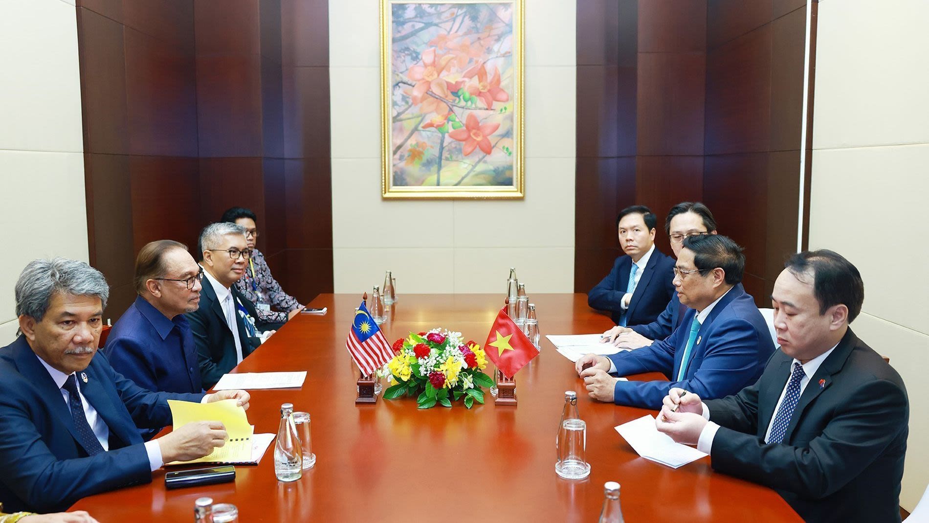 В ходе участия в 44-м и 45-м саммитах АСЕАН и соответствующих саммитах во Вьентьяне (Лаос) 10 октября 2024 года Премьер-министр Фам Минь Тьинь встретился с Премьер-министром Малайзии Анваром Ибрахимом. Фото: ВИА