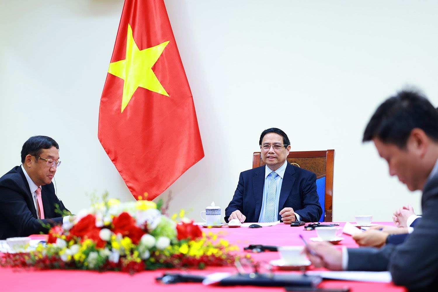 Премьер-министр Фам Минь Тьинь проводит телефонные переговоры с Премьер-министром Малайзии Анваром Ибрахимом в Ханое, 28 апреля 2025 года. Фото: ВИА