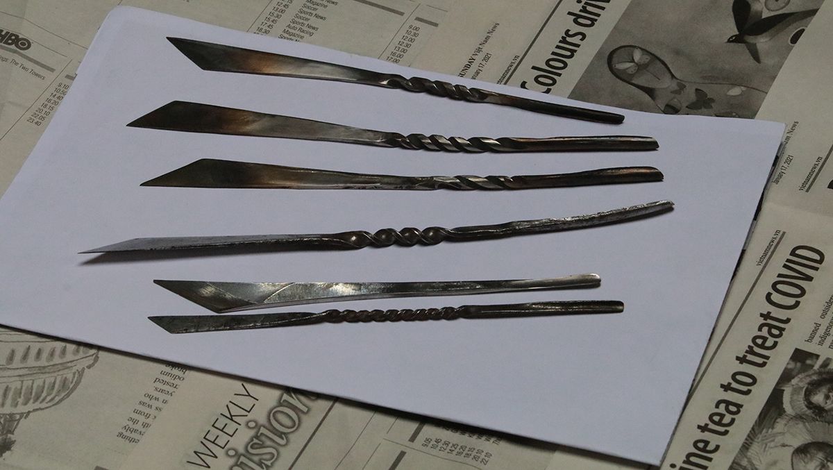 Bộ dụng cụ gọt củ hoa thủy tiên. (Ảnh: NAM NGUYỄN)
