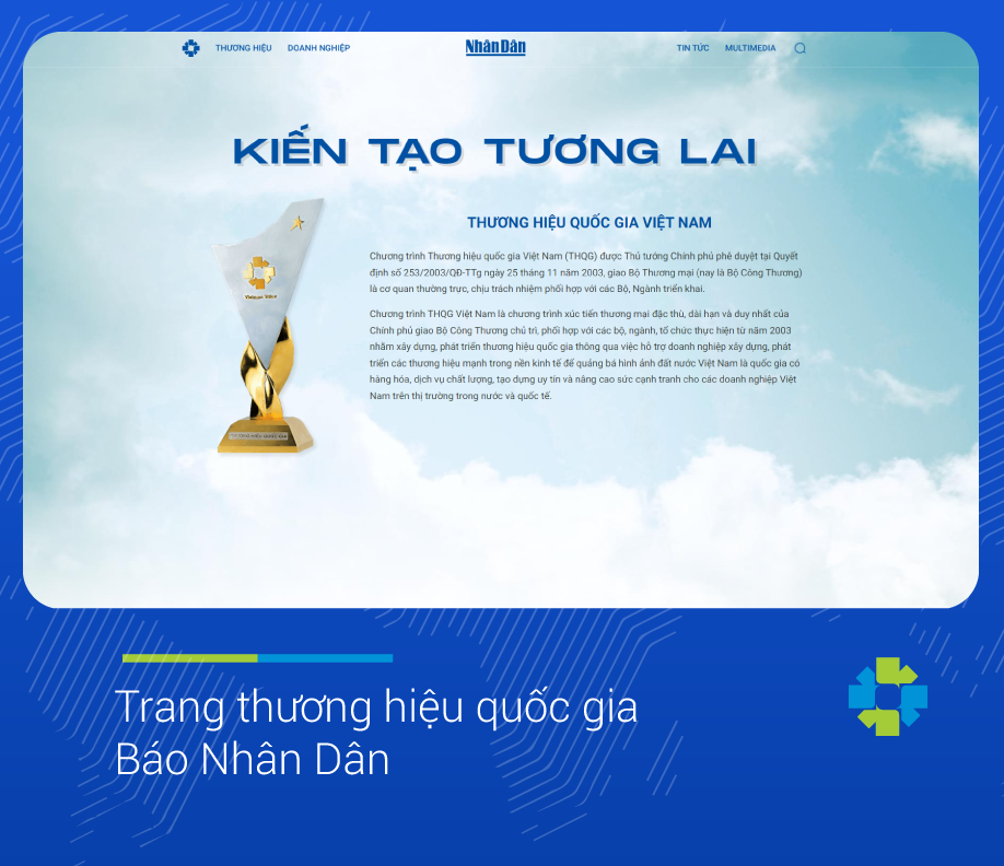 Với mục tiêu xây dựng, bảo vệ và phát triển thương hiệu trong hoạt động sản xuất, kinh doanh và đầu tư; phát triển thương hiệu, nhãn hiệu quốc gia có uy tín quốc tế, Báo Nhân Dân phối hợp Bộ Công thương xây dựng Chuyên trang Thương hiệu quốc gia (tại địa chỉ http://thuonghieuquocgia.nhandan.vn), dự kiến sẽ ra mắt trong tháng 10/2024. Chuyên trang Thương hiệu quốc gia trên Báo Nhân Dân - Cơ quan trung ương của Đảng Cộng sản Việt Nam, đồng thời là một trong sáu cơ quan báo chí chủ lực đa phương tiện của đất nước - với những thông tin toàn diện, minh bạch về từng doanh nghiệp, sản phẩm sẽ là kênh tra cứu có uy tín trong và ngoài nước, góp phần quảng bá, phát triển và bảo vệ các thương hiệu Việt.