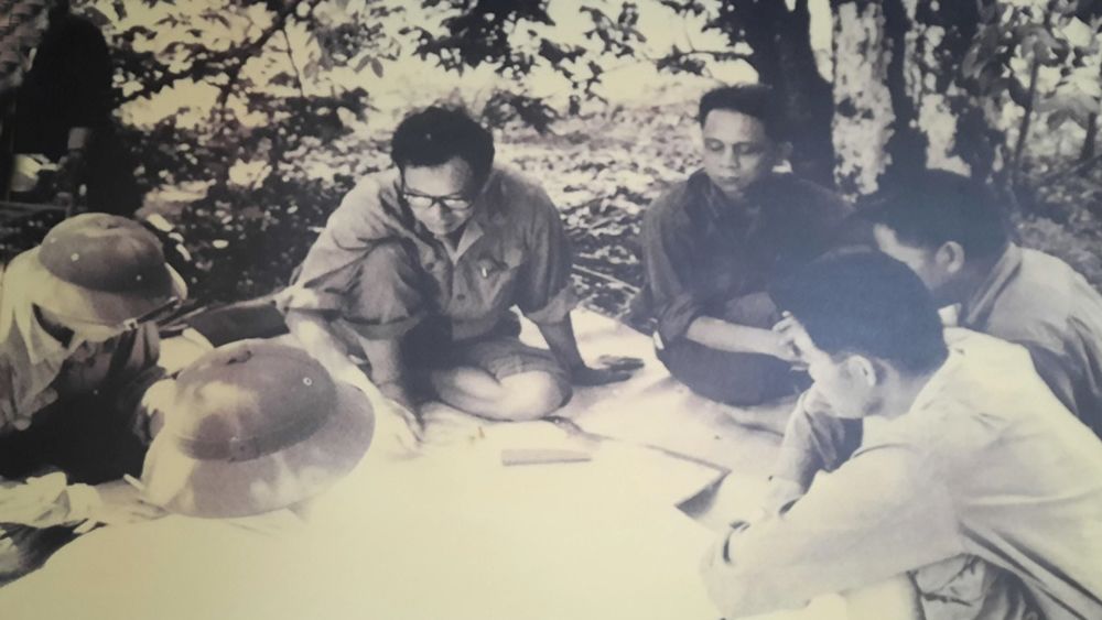 Đồng chí Nguyễn Hữu An (đeo kính) cùng Bộ Tư lệnh Quân đoàn 2 giao nhiệm vụ cho các đơn vị trực thuộc đánh vào Dinh Độc Lập.