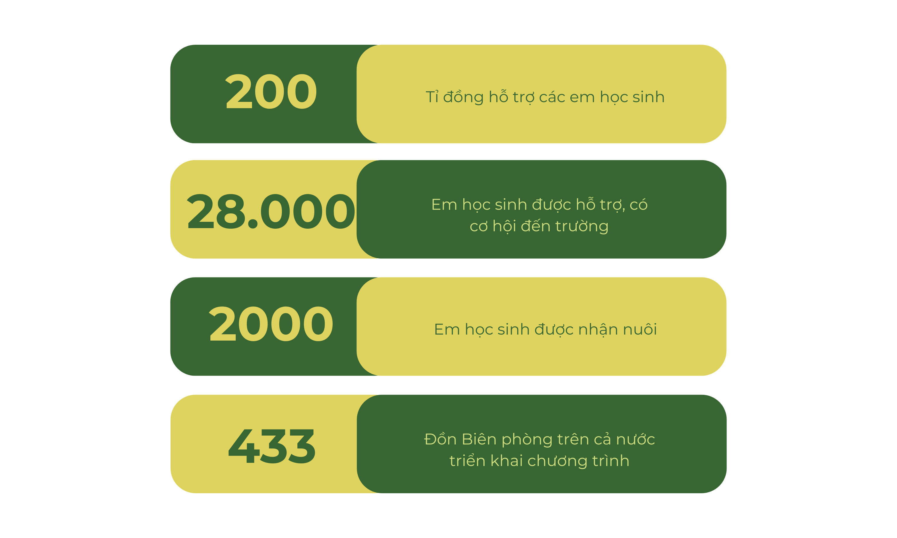 Với khẩu hiệu “Đồn là nhà, biên giới là quê hương, đồng bào các dân tộc là anh em ruột thịt”, chương trình “Nâng bước em tới trường” và “Con nuôi Đồn Biên phòng” đã ra đời và giúp đỡ hơn 30.000 em học sinh tới trường. Những “ông Bố” mang quân hàm xanh đã là điểm tựa cho các em học sinh vùng biên cương.