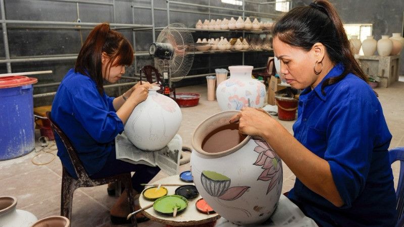 Hướng tới phát triển bền vững, các doanh nghiệp và cơ sở sản xuất làng nghề Bát Tràng đã tích cực chuyển đổi công nghệ nung gốm từ lò than, lò gas truyền thống sang lò gas hiện đại.