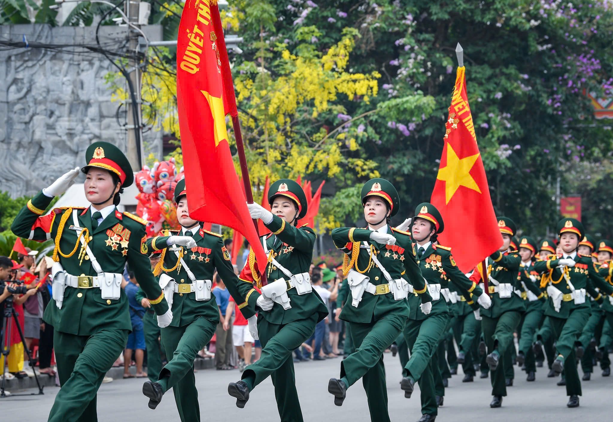 Khối Nữ lực lượng gìn giữ hòa bình của Quân đội nhân dân Việt Nam tiến vào Lễ đài. Hành trình 10 năm xây dựng, trưởng thành, các lực lượng gìn giữ hòa bình Việt Nam luôn quán triệt sâu sắc đường lối đối ngoại của Đảng, nêu cao tinh thần độc lập, tự chủ, hòa bình, hữu nghị, hợp tác và phát triển, hoàn thành xuất sắc mọi nhiệm vụ; khẳng định Việt Nam là bạn, là đối tác tin cậy, thành viên có trách nhiệm của cộng đồng quốc tế, để lại nhiều ấn tượng, tình cảm tốt đẹp về đất nước, con người Việt Nam với bè bạn năm châu, đồng nghiệp quốc tế và người dân địa phương.