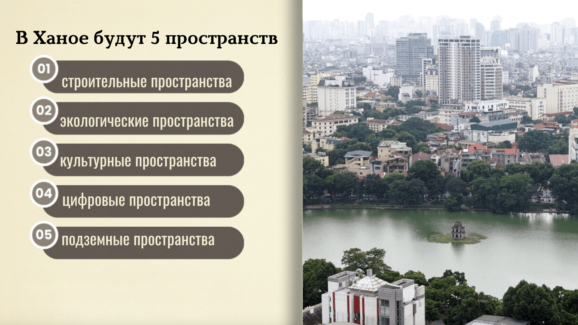 Среди пространств городского развития Ханоя есть и районы, которые необходимо сохранять, реконструировать, ремонтировать, и новые районы. В последние годы город уделяет большое внимание развитию новых районов. Количество проектов очень велико. Город должен учитывать преференциальные механизмы по сохранению традиционных ценностей Ханоя.
