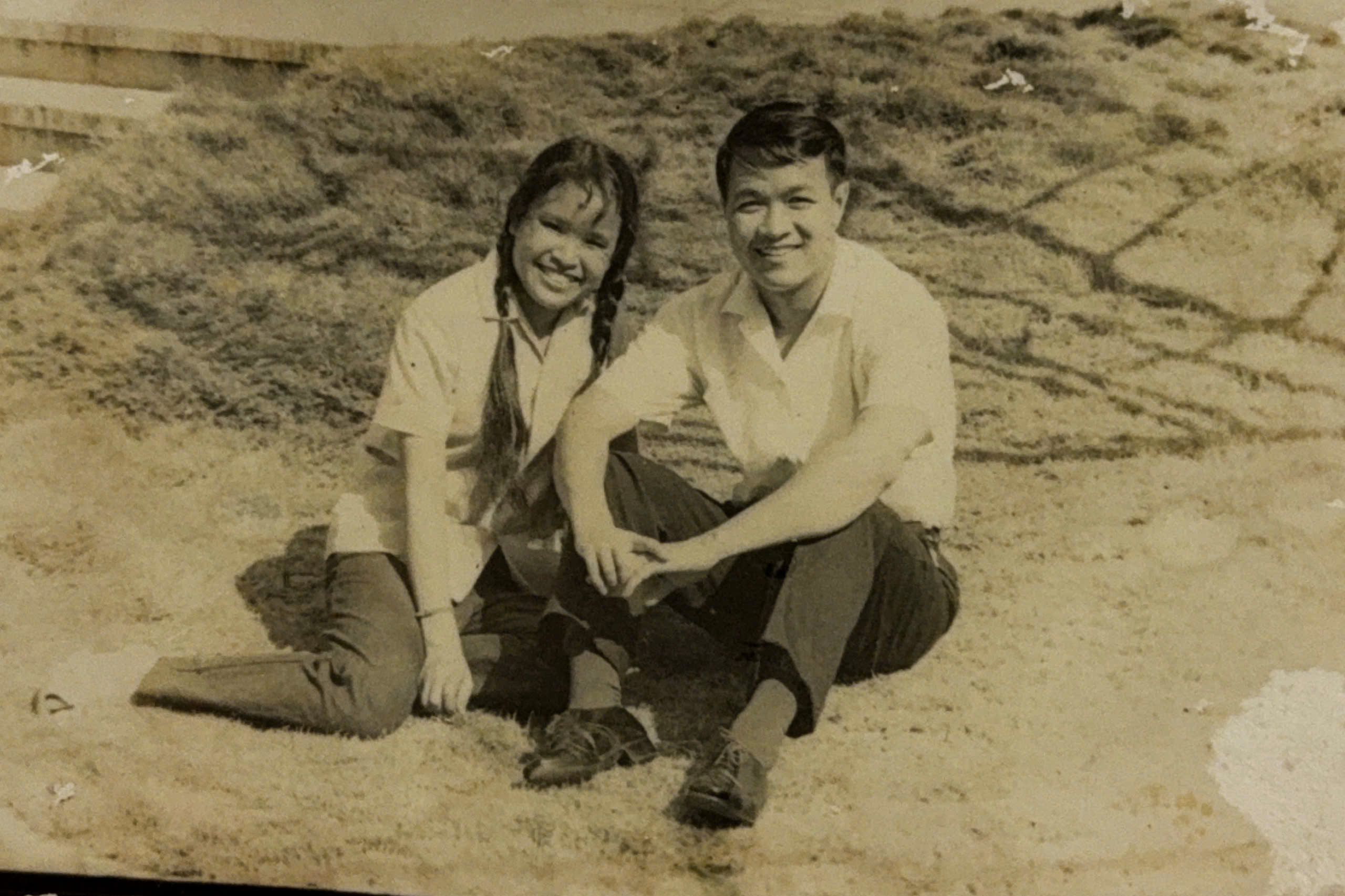Ông Nguyễn Văn Thọ và bà Phạm Thị Nam chụp ảnh kỷ niệm trong khuôn viên Đại sứ quán Việt Nam tại Cuba, năm 1972. (Ảnh: Nhân vật cung cấp)