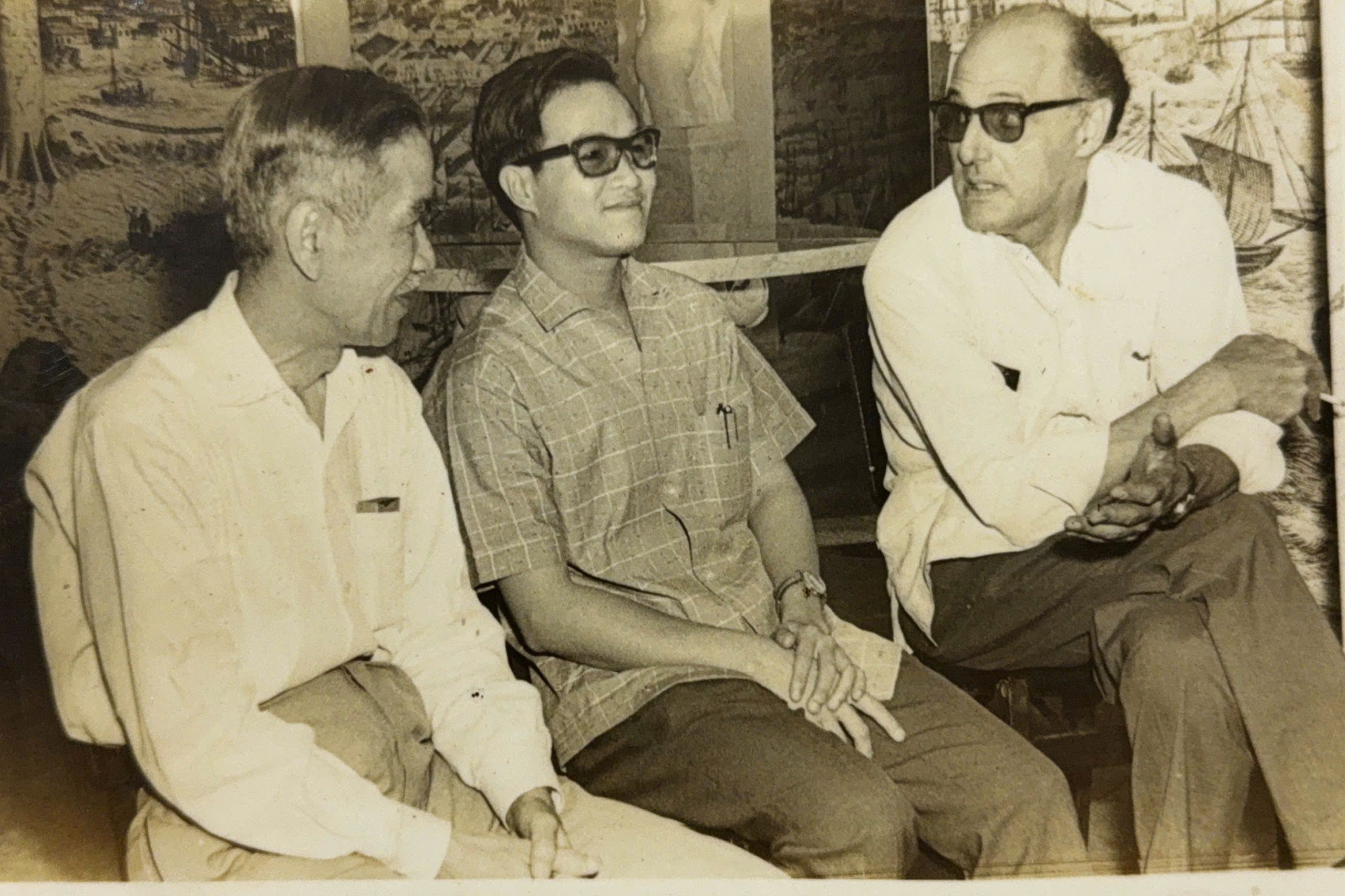 Ông Nguyễn Văn Thọ (ở giữa) chụp ảnh với Giáo sư Ca Văn Thỉnh (bên trái), Giám đốc Thư viện Khoa học Xã hội Trung ương và Tiến sĩ, Giáo sư Julio Le Riverant, Viện trưởng Viện Hàn lâm Khoa học Cuba, tháng 10/1968. (Ảnh: Nhân vật cung cấp)