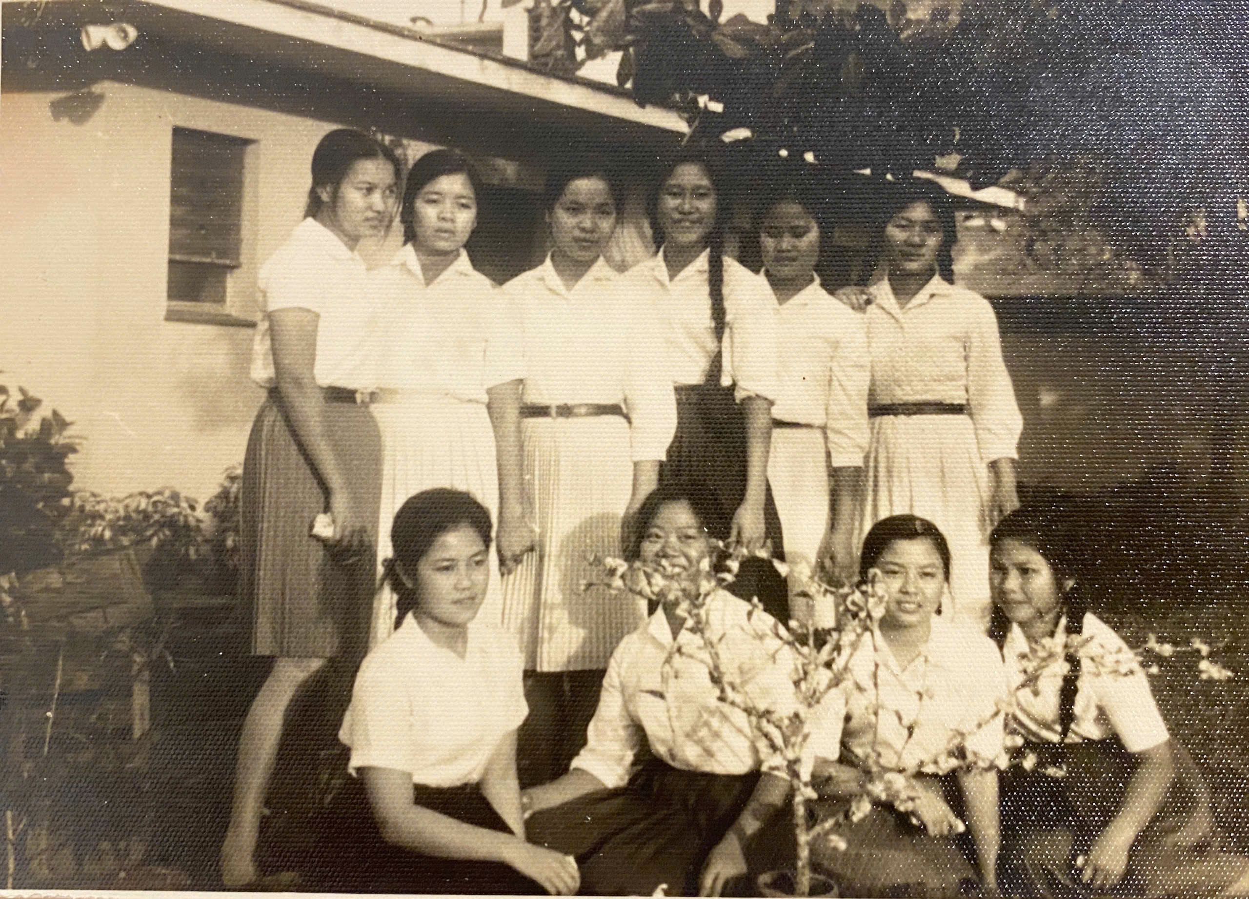 Bà Lương Kim Thái (ngồi hàng đầu thứ tư từ trái sang) cùng các bạn học của mình khi học tiếng Tây Ban Nha ở Siboney, năm 1967. (Ảnh: Nhân vật cung cấp)