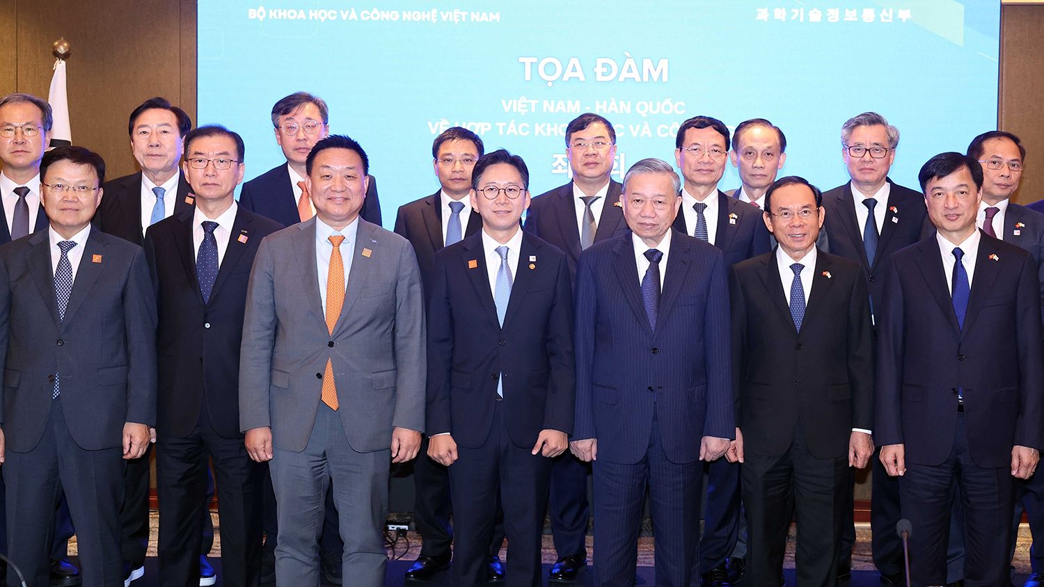 Tổng Bí thư và Đoàn đại biểu cấp cao Việt Nam cũng gặp một số lãnh đạo các tập đoàn hàng đầu Hàn Quốc; làm việc với lãnh đạo thành phố Busan… Tổng Bí thư đã dự Tọa đàm về khoa học công nghệ Việt Nam-Hàn Quốc với sự tham gia của đông đảo các nhà khoa học, quản lý và lãnh đạo doanh nghiệp hai nước. Đây là lần đầu tiên hai nước tổ chức tọa đàm cấp cao nhằm khởi tạo khuôn khổ hợp tác chiến lược chặt chẽ về ba động lực tăng trưởng then chốt: khoa học-công nghệ, đổi mới sáng tạo và chuyển đổi số. Khẳng định hợp tác khoa học công nghệ được xác định là một trụ cột quan trọng để nâng tầm quan hệ Việt Nam-Hàn Quốc trong thời gian tới, Tổng Bí thư Tô Lâm tin tưởng, quan hệ Đối tác chiến lược toàn diện Việt Nam-Hàn Quốc sẽ phát triển ngày càng thực chất, hiệu quả, mang lại lợi ích bao trùm và bền vững cho hai quốc gia.