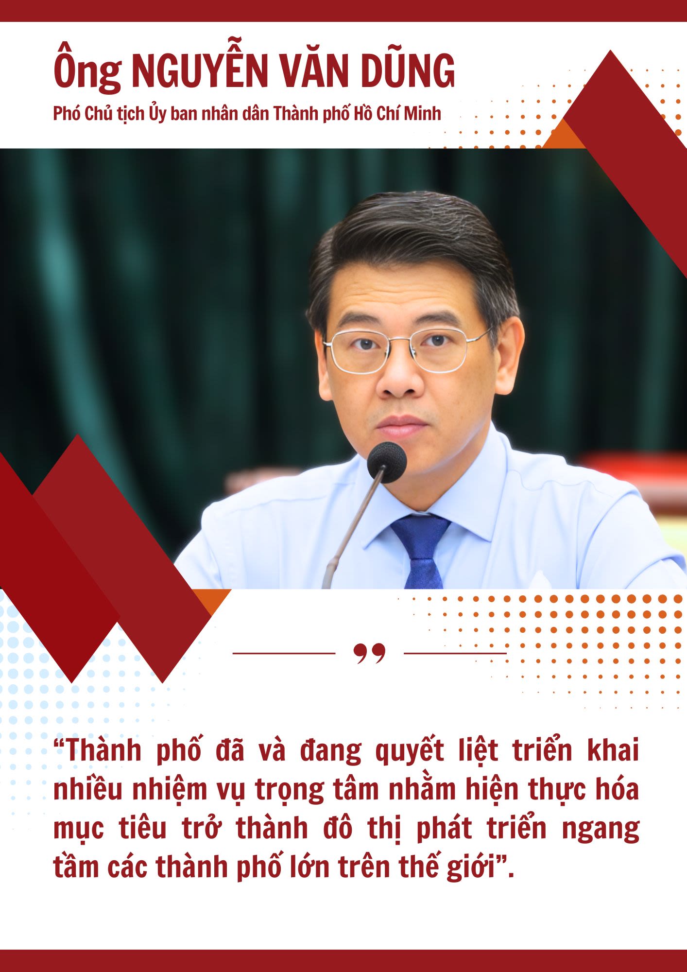 Nhằm hiện thực hóa mục tiêu trở thành đô thị phát triển ngang tầm các thành phố lớn trên thế giới, mà lãnh đạo Thành phố Hồ Chí Minh đã đề ra, các nhiệm vụ then chốt đã được tập trung thực hiện: