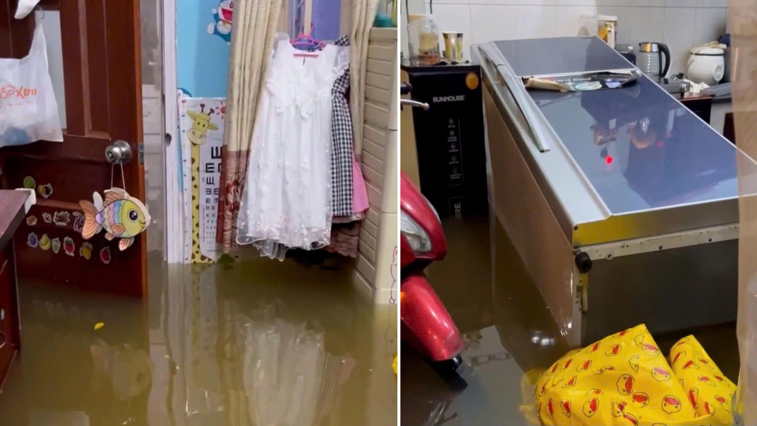 Do nước triều ập vào quá nhanh, chúng tôi không kịp trở tay nên nhiều tài sản giá trị như: Máy giặt, tủ lạnh, hai ao cá cùng nhiều tài sản khác chìm trong nước. Mực triều dâng cao cũng làm bức tường trong khu nhà bếp dài khoảng 5m bị đổ sập.