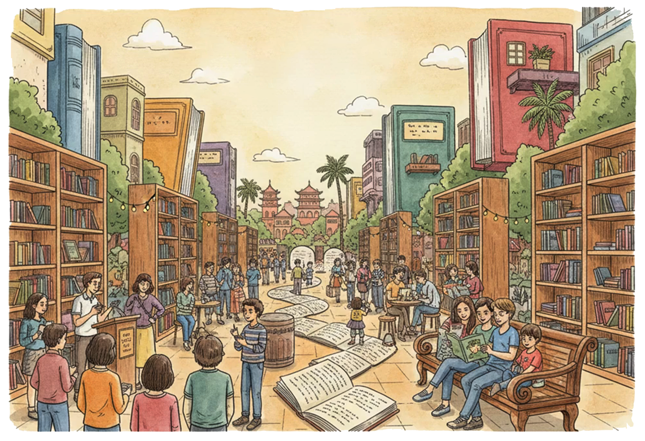 Không thụ động trước sự thay đổi của thời đại, nhiều tổ chức và cá nhân đã chủ động tạo ra những không gian đọc mới, góp phần duy trì và lan tỏa văn hóa đọc trong cộng đồng. Ở Thành phố Hồ Chí Minh, đường sách Nguyễn Văn Bình đã trở thành điểm đến quen thuộc, nơi diễn ra nhiều hoạt động giao lưu văn hóa, giới thiệu sách, tạo sự gắn kết cộng đồng. Vượt ra khỏi vai trò chỉ là một địa điểm mua bán, nơi đây đã trở thành không gian văn hóa cộng đồng.