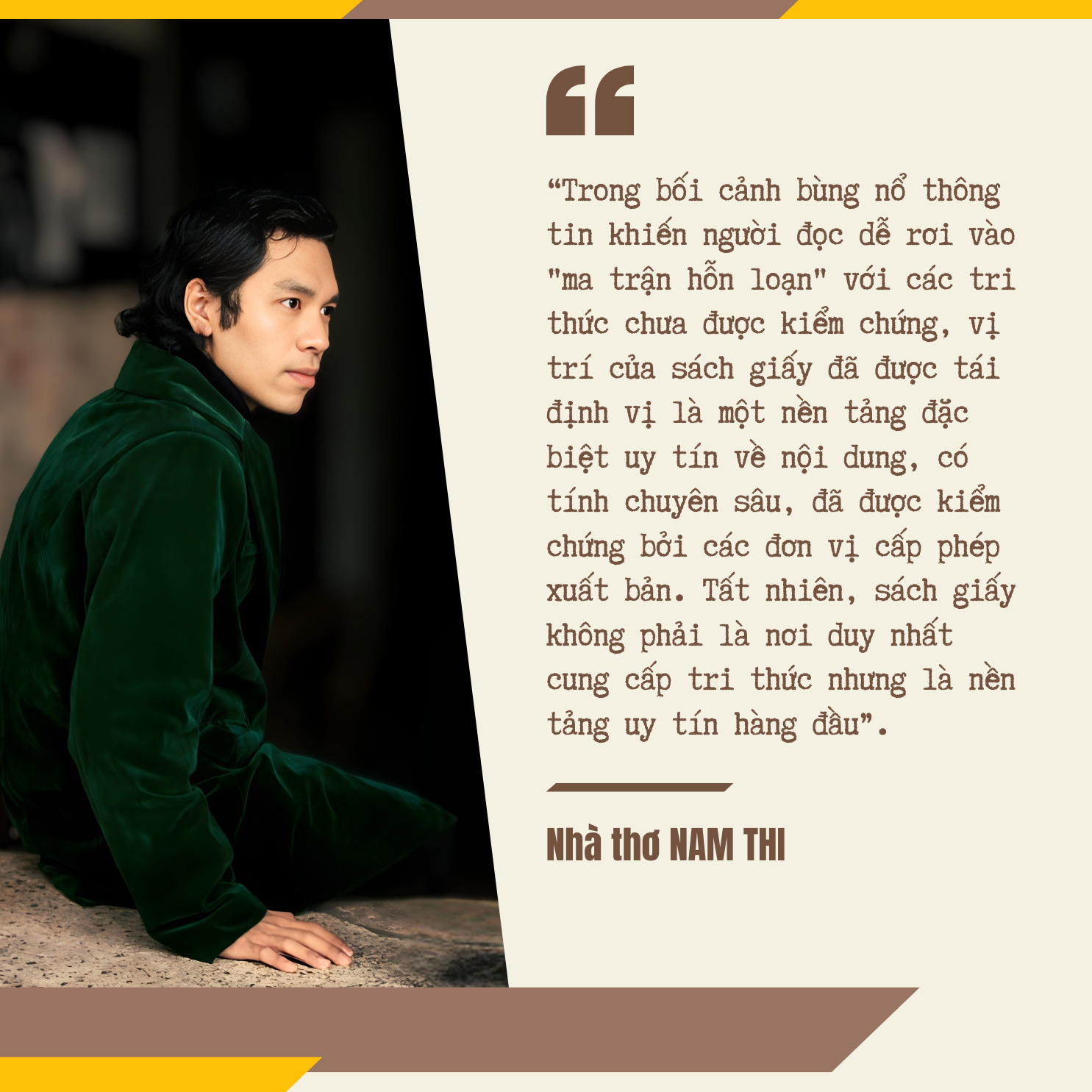 Ngày nay, khi mạng xã hội và các nền tảng số bùng nổ, sách giấy không còn giữ vị trí trung tâm của văn hóa đọc như trước. Độc giả có nhiều kênh tiếp cận thông tin hơn, nhưng cũng dễ rơi vào “ma trận” kiến thức chưa được kiểm chứng. Chính trong bối cảnh ấy, sách giấy được nhìn nhận như một nguồn tư liệu uy tín, chuyên sâu, được thẩm định bởi các đơn vị xuất bản. Điều này cũng khiến tác giả khi xuất bản sách có ý thức nghề nghiệp và trách nhiệm cao hơn.
