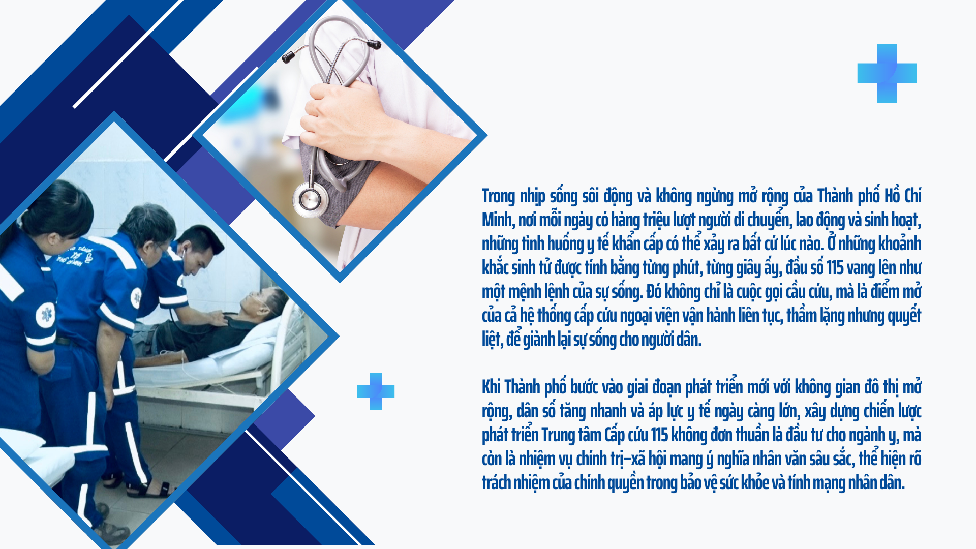 Từ những ca cấp cứu cụ thể diễn ra trong đời sống hằng ngày đến những định hướng chiến lược dài hạn, có thể thấy Trung tâm Cấp cứu 115 Thành phố Hồ Chí Minh đang từng bước khẳng định vai trò là lực lượng tuyến đầu trong bảo vệ sức khỏe và tính mạng nhân dân. Mỗi trạm cấp cứu vệ tinh được mở thêm, mỗi cuộc gọi 115 được tiếp nhận và xử trí kịp thời đều góp phần củng cố niềm tin của người dân vào hệ thống y tế Thành phố.