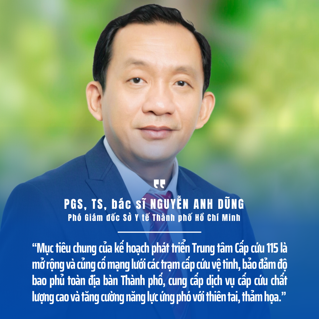 Theo kế hoạch, Thành phố Hồ Chí Minh phấn đấu có ít nhất 70 trạm cấp cứu vệ tinh sẵn sàng hoạt động với bán kính phục vụ tối đa 20 kilômét, thời gian tiếp cận hiện trường dưới 15 phút. Thành phố cũng đặt mục tiêu bổ sung tối thiểu 25 xe cứu thương để đạt tỷ lệ xe cứu thương trên 100.000 dân theo khuyến cáo của Tổ chức Y tế Thế giới. Đồng thời, toàn bộ địa bàn sẽ sử dụng thống nhất đầu số 115, mở rộng năng lực tổng đài lên 15.000 cuộc gọi mỗi ngày và đẩy mạnh ứng dụng công nghệ số trong điều phối cấp cứu.