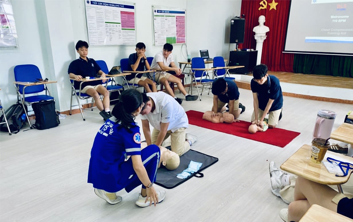 Sinh viên các trường đại học trải nghiệm tìm hiểu kỹ năng sơ cứu tại Trung tâm Cấp cứu 115.