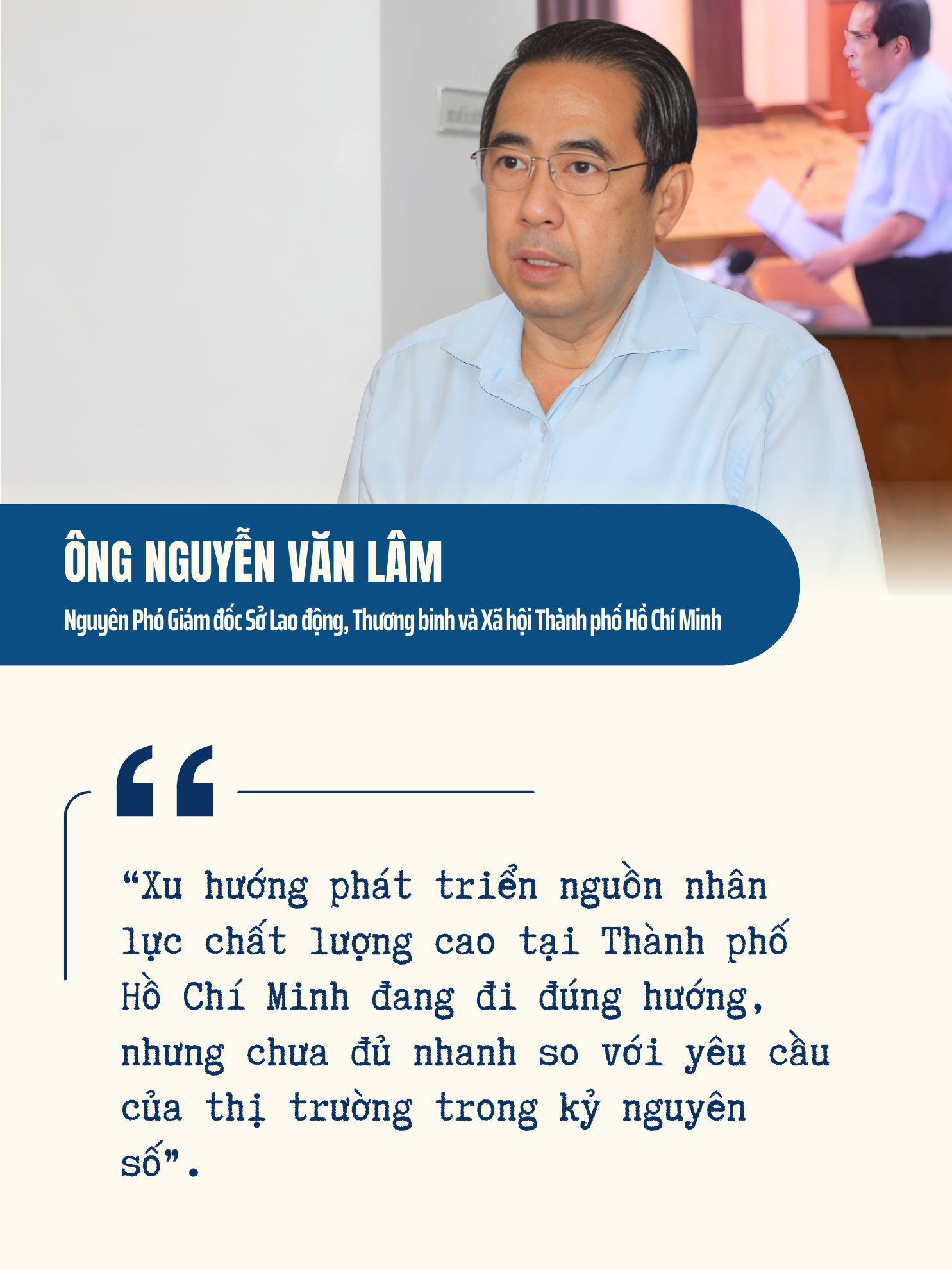 Thực trạng này phản ánh yêu cầu cấp bách phải phát triển nguồn nhân lực chất lượng cao như một “đột phá chiến lược” mang tính sống còn cho sự phát triển nhanh và bền vững của Thành phố Hồ Chí Minh trong kỷ nguyên số. Hiện, Thành phố đang phải đối mặt với tình trạng thiếu hụt nguồn nhân lực chất lượng cao trong nhiều lĩnh vực then chốt: Công nghệ thông tin, điện tử, vi mạch bán dẫn, AI, chăm sóc sức khỏe, kỹ thuật số, cơ khí chính xác, tài chính, logistics…