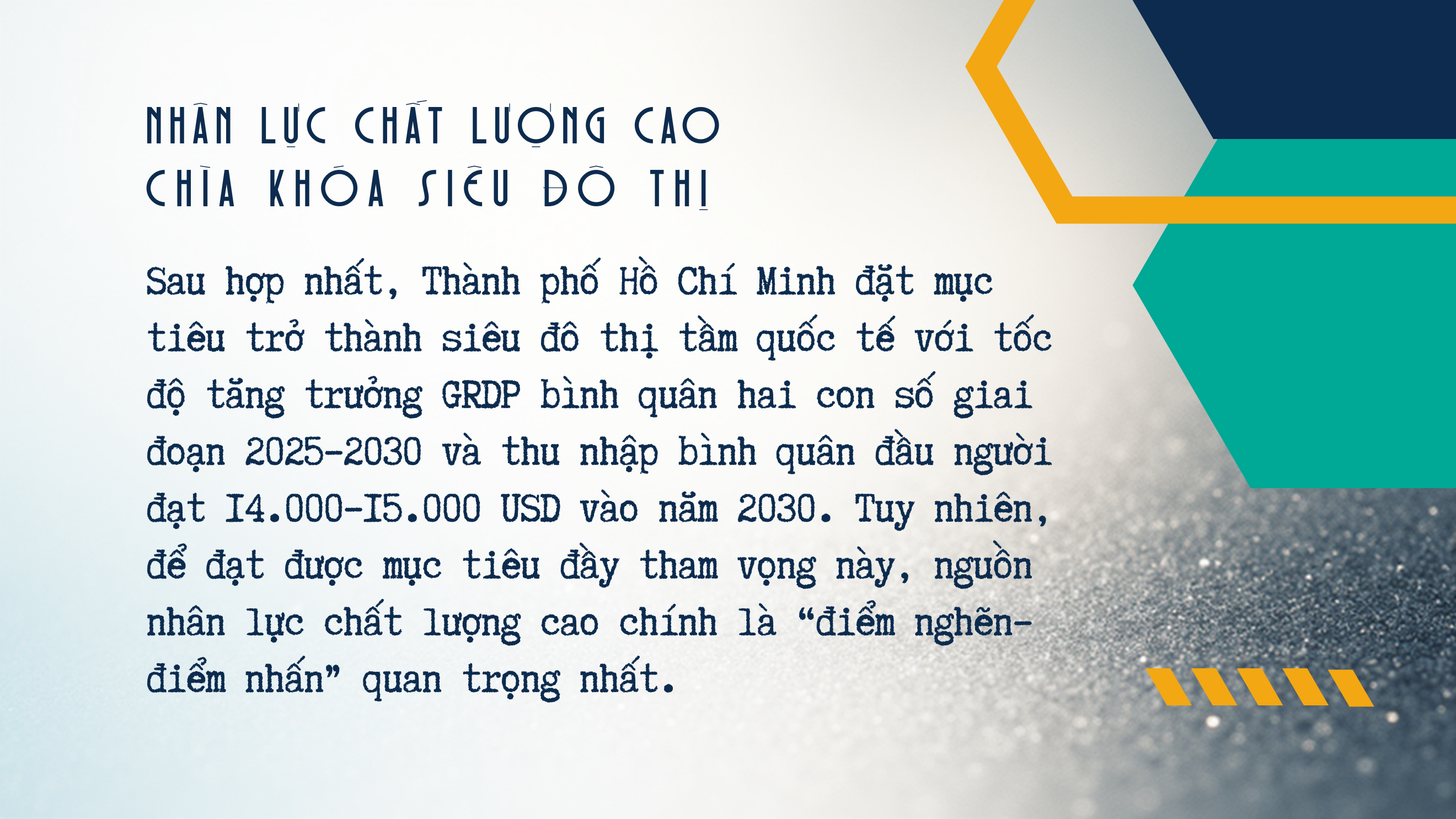 Trong hành trình trở thành siêu đô thị tầm vóc toàn cầu, Thành phố Hồ Chí Minh cần một “cú huých” mạnh mẽ từ nguồn nhân lực chất lượng cao. Với chiến lược đầu tư đúng hướng, sự đồng hành của Nhà nước–nhà trường–doanh nghiệp và sự chủ động đổi mới của các cơ sở đào tạo, Thành phố hoàn toàn có cơ sở để xây dựng một lực lượng lao động bản lĩnh–sáng tạo–hội nhập, sẵn sàng dẫn dắt tương lai kinh tế tri thức của Việt Nam.