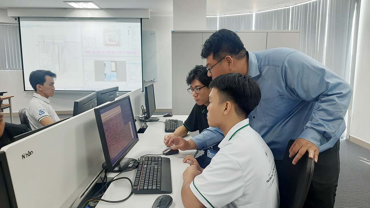 Sinh viên Trường đại học Công nghệ thông tin, Đại học Quốc gia Thành phố Hồ Chí Minh thực hành thiết kế vi mạch.