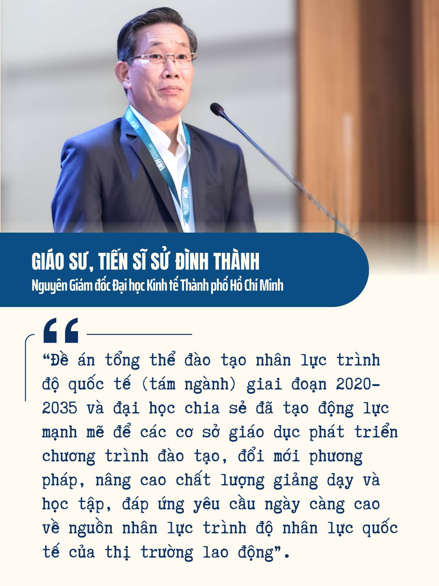 Với mục tiêu xây dựng nguồn nhân lực phải đáp ứng nhu cầu thị trường lao động và yêu cầu chuyển dịch cơ cấu kinh tế, Thành phố Hồ Chí Minh đã và đang tập trung đẩy mạnh đào tạo nhân lực trình độ cao theo hướng hiện đại hóa và hội nhập quốc tế. Để cụ thể hóa mục tiêu trên, Thành phố Hồ Chí Minh đã ban hành Đề án tổng thể đào tạo nhân lực trình độ quốc tế (tám ngành) giai đoạn 2020-2035 và đại học chia sẻ.
