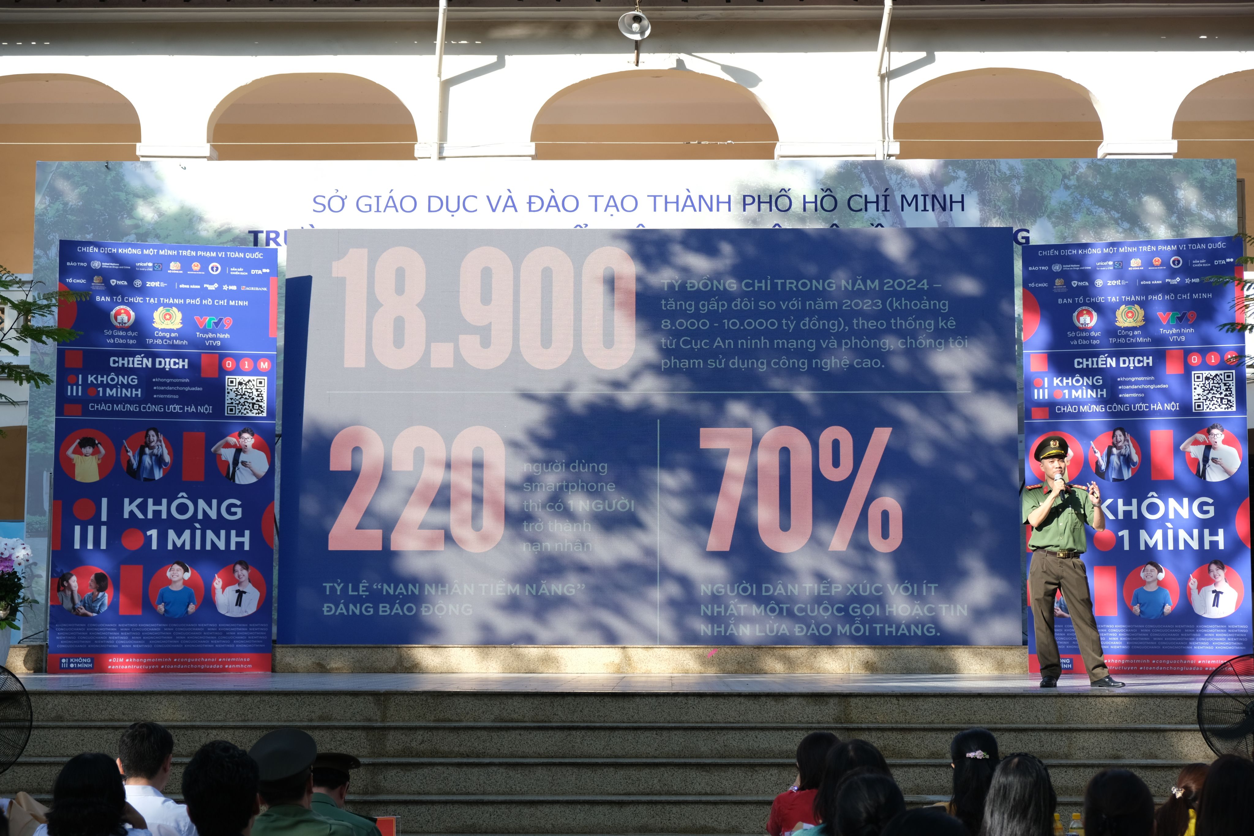 Để hưởng ứng công ước Hà Nội, Công an Thành phố Hồ Chí Minh phối hợp cùng Sở Giáo dục và Đào tạo đồng chủ trì tổ chức chương trình phát động chiến dịch “Không một mình-Cùng nhau an toàn trực tuyến”.