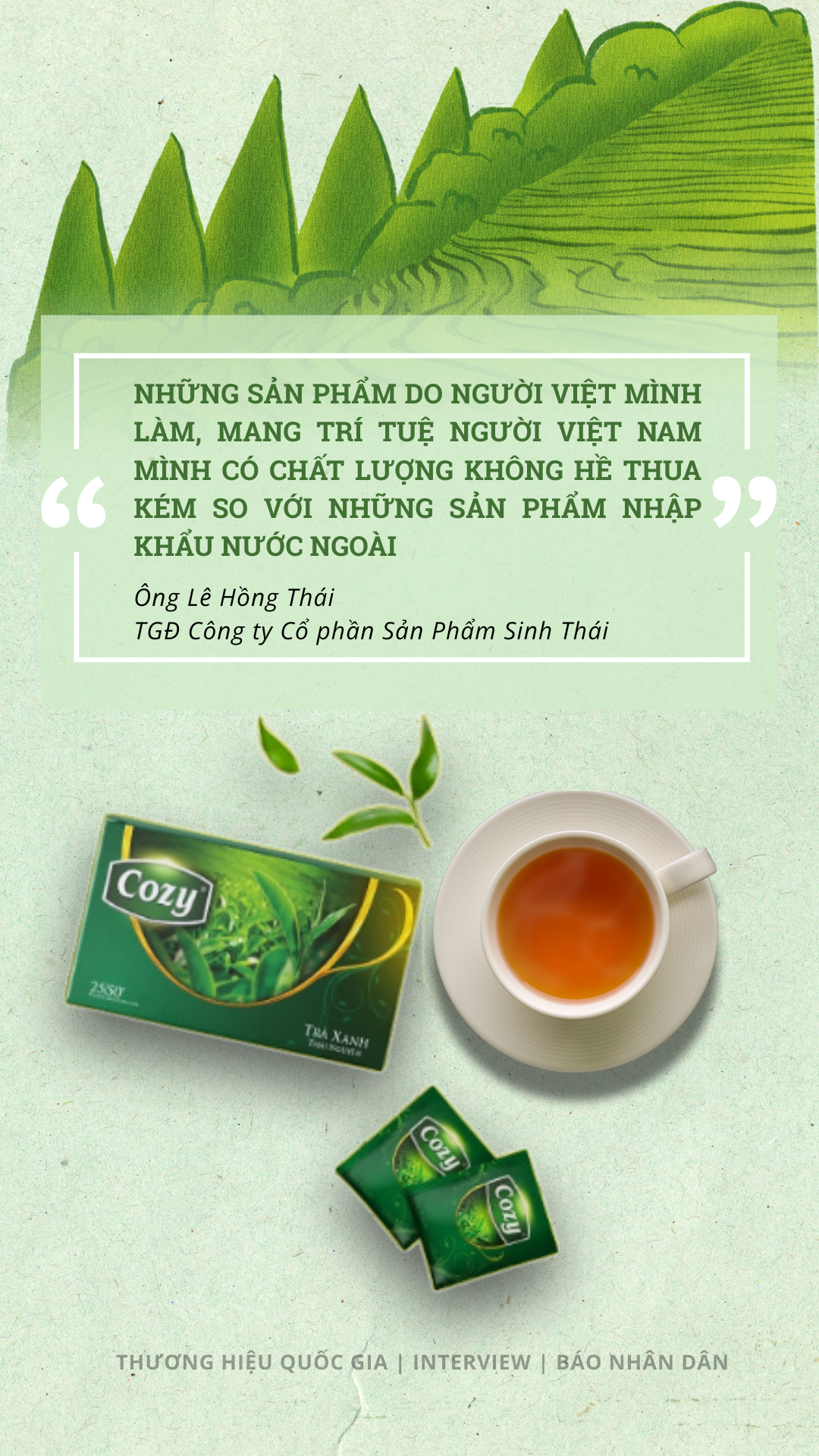 Chính vì vậy, chúng tôi đã quyết định thành lập ra công ty để tạo ra một thương hiệu trà Việt Nam để phục vụ cho đối tượng khách hàng người Việt Nam. Thương hiệu Trà Cozy thuộc Công ty Sản Phẩm Sinh Thái, thành lập năm 2003, tiền thân là Công ty Thế Hệ Mới Phú Thọ có kinh nghiệm trong lĩnh vực sản xuất và xuất khẩu các sản phẩm chè của Việt Nam. Công ty sở hữu nhiều vùng nguyên liệu ở các khu vực trồng chè nổi tiếng ở Việt Nam như: Thái Nguyên, Yên Bái, Phú Thọ, Bảo Lộc…