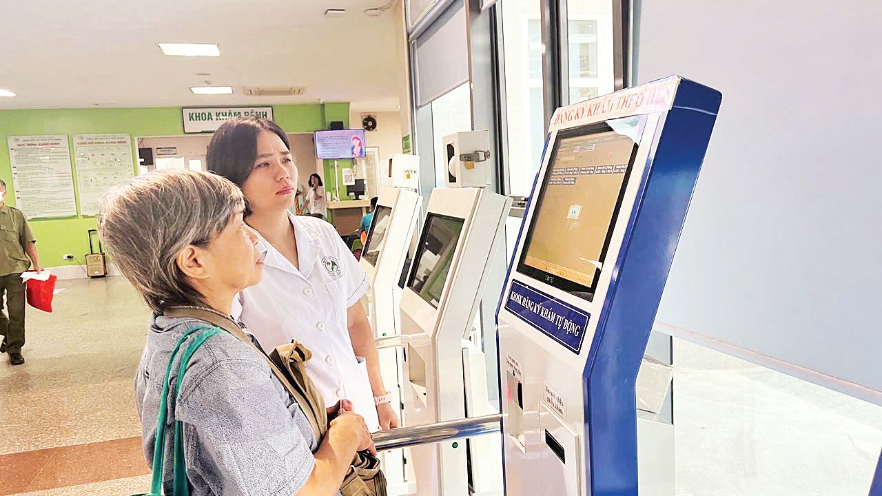 Kios thông minh ở Bệnh viện Đa khoa Đức Giang thuận tiện với cả bệnh nhân cao tuổi.
