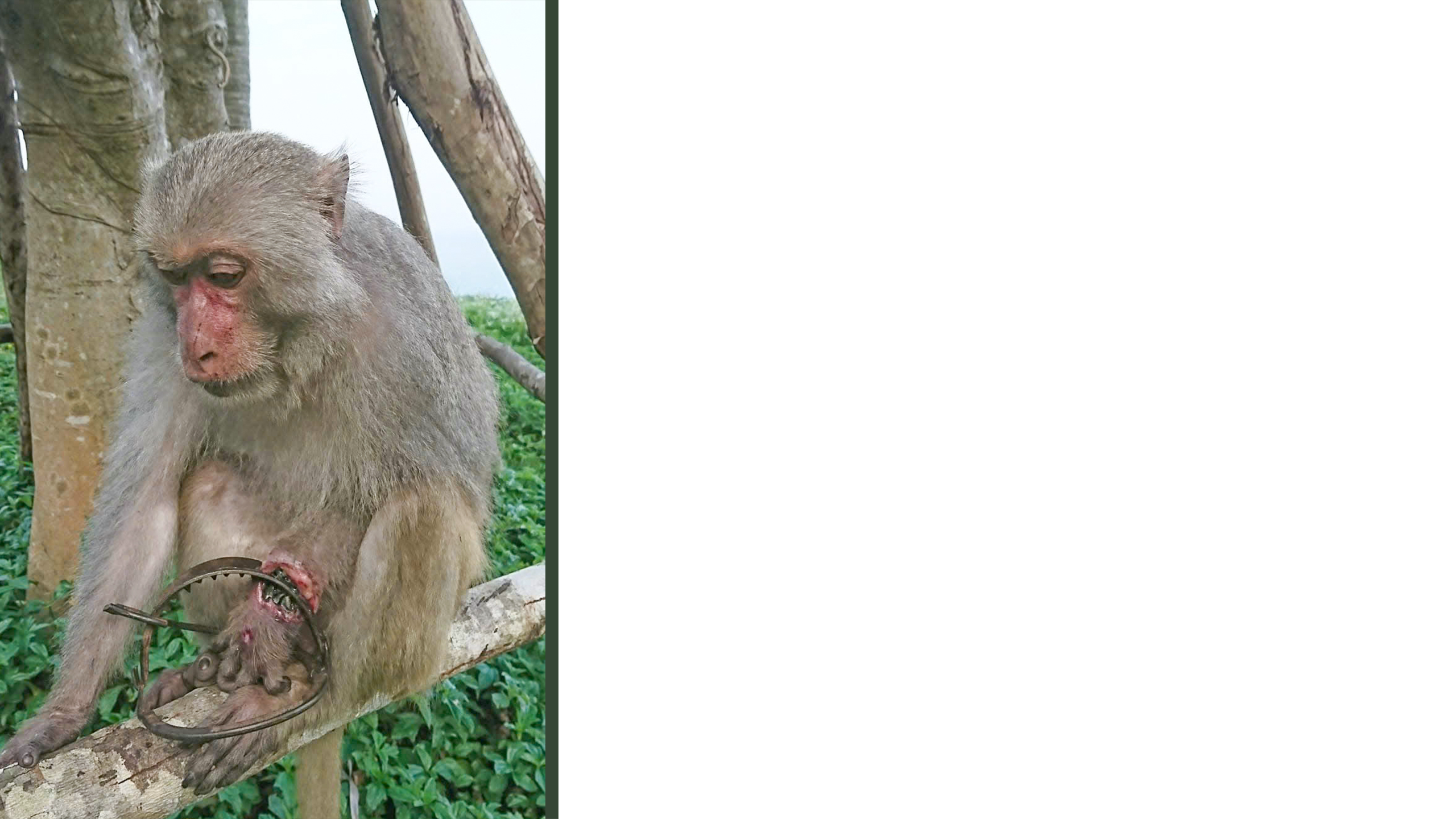 Các bức ảnh ghi lại cảnh bẫy thú giăng kín rừng, thú rừng rên xiết và chết thảm, là lời cảnh báo thống thiết, là bằng chứng không thể chối cãi về việc đàn khỉ hoang của thiên nhiên Việt Nam đang bị tàn sát ra sao. Họ đã giết khỉ mẹ, khỉ cha, khỉ trưởng thành, rồi cõng khỉ con về bán cho người ta làm thú cưng, làm “diễn viên xiếc nhí”, làm “khỉ baby” thực hiện đủ trò trên mạng xã hội (nhằm kiếm tiền cho các “chủ kênh”).